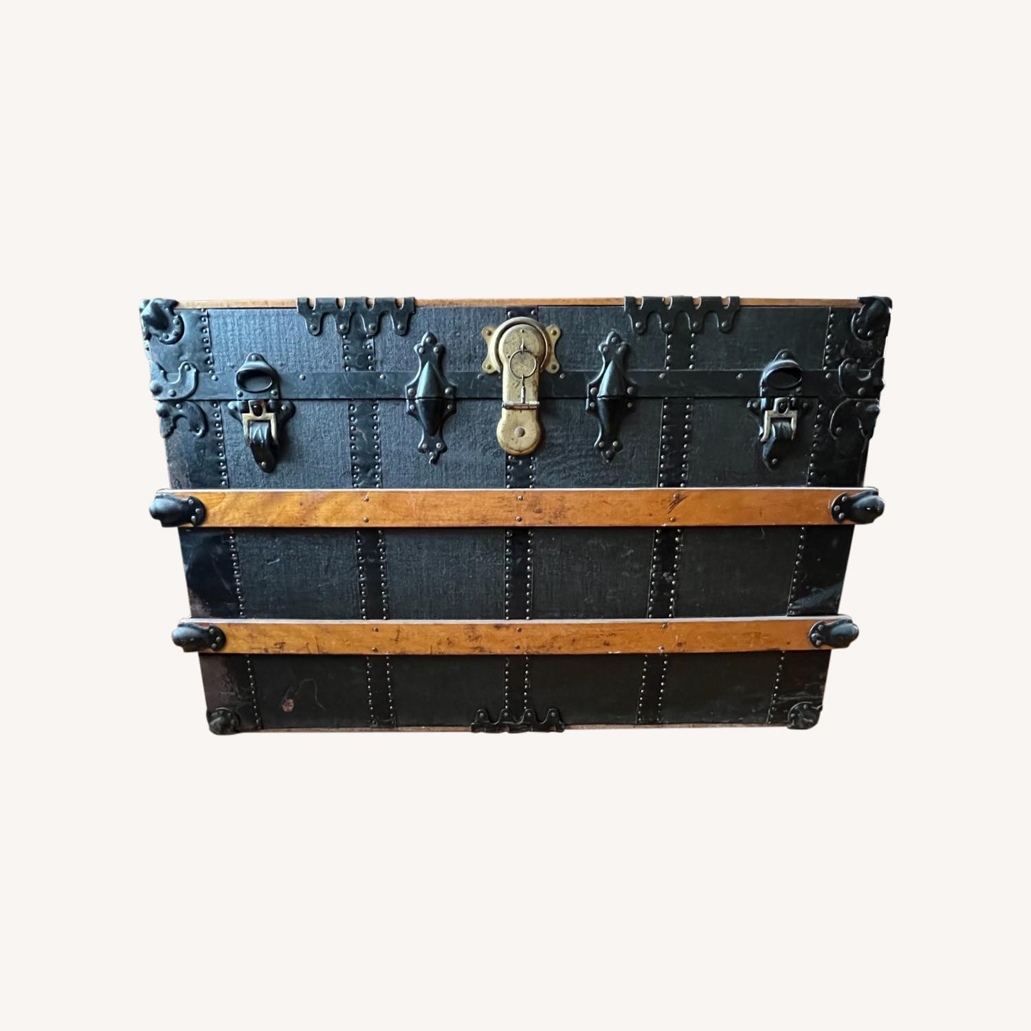 Antique 19th Century P&s Banded Steamer Trunk
