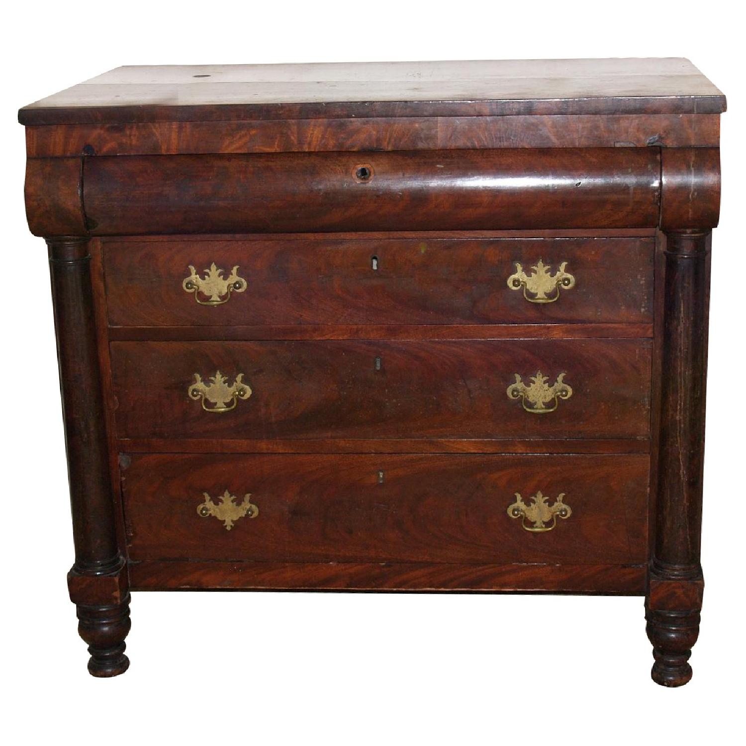 Seller's Notes:Beautiful dark-wood (mahogany look -- very special wood) antique chest from Zanesville Ohio four drawers stately presence rustic or shabby chic decor -- We need space our loss is your gain. Thank you for looking at our other listings.