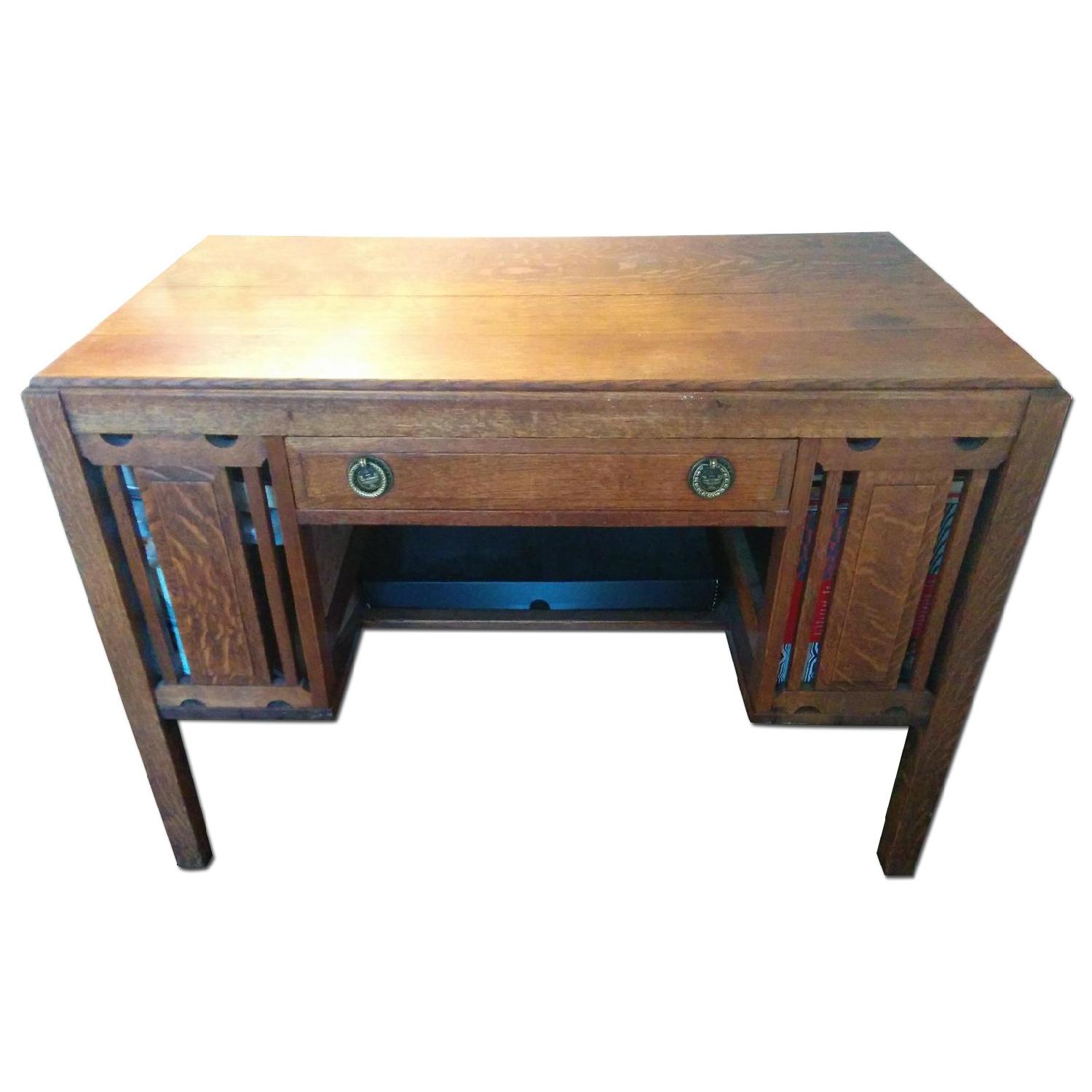 Antique Arts & Crafts Craftsman Mission Oak Partners Desk w/ Bookshelves