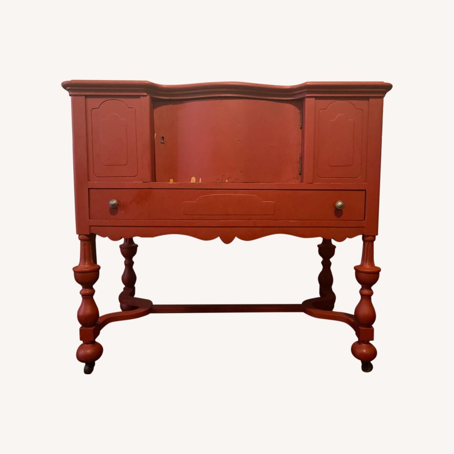 Seller's Notes:This unique piece was purchased from a local antique shop. Since then it has served as a lovely decorative bar table in our dining room for many years. It’s solid wood construction and craftsmanship are two highlights of this piece. An added bonus are the wheels at the bottom of each leg