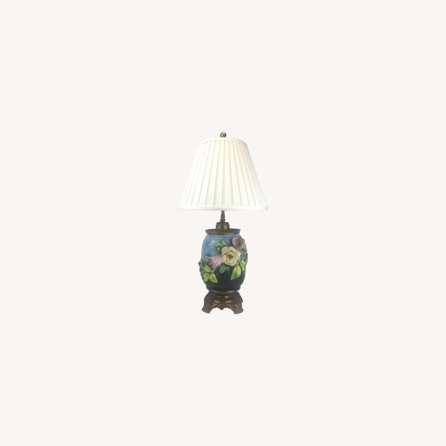 Seller's Notes:This impressive 19th Century Barbotine Majolica vase was converted into a lamp in the early 20th century. Quality manufacture with delicate porcelain detail- sold and ships without the shade. Heavy porcelain lamp on vintage brass base. Dimensions: 9.5dia 28h Condition: age appropriate wear, some scuffs/scratches, edge wear, patina, some losses/previous repairs- see photos for details.