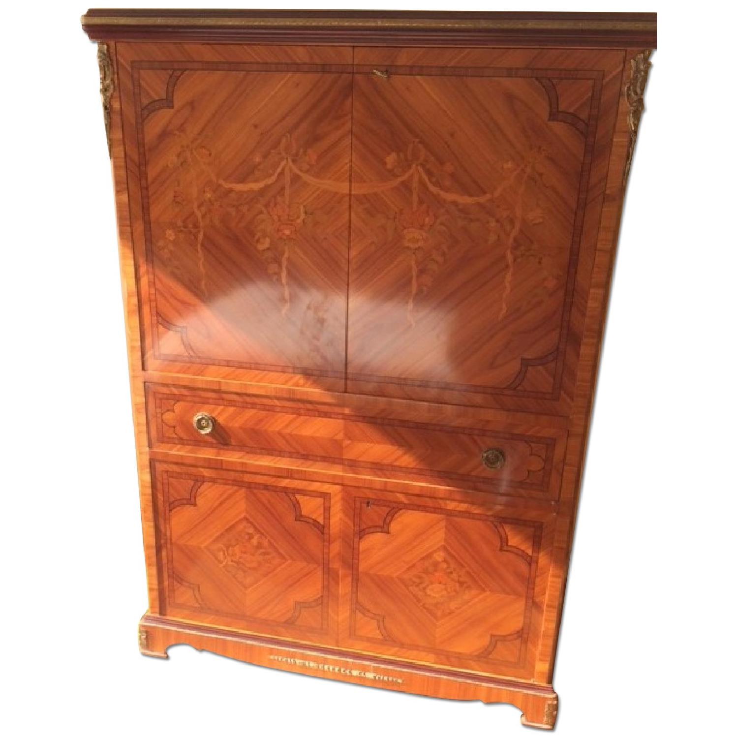 Seller's Notes:Stunning Antique hardwood cabinet that has beautiful etched inlay design and brass etching inlays all around in very good condition. Original owner ....