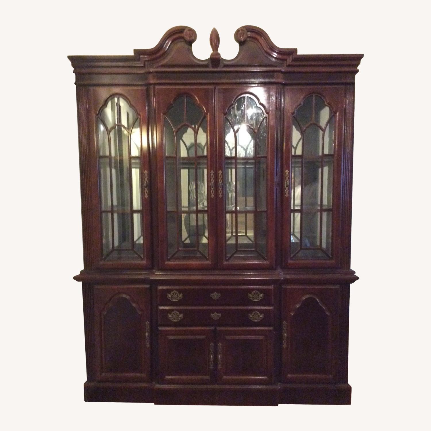 Seller's Notes:The cabinet is in excellent condition. Has some scratches in the upper right (SEE PIC). No missing hardware. Shelves are wood and glass. Mirror is on back. The cabinet is two separate pieces (not attached).