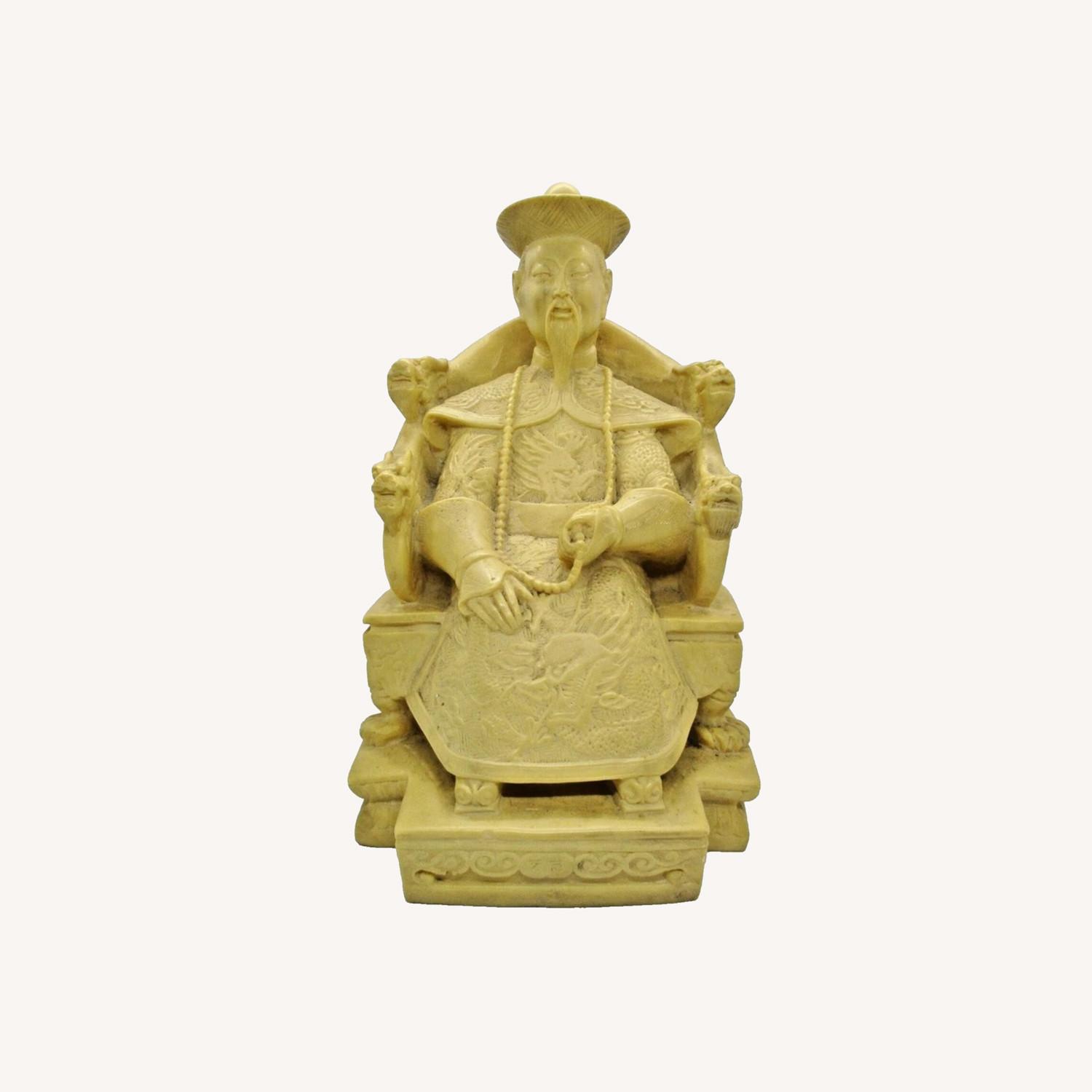 Seller's Notes:The Antique Chinese Carved Stone Seated Qianlong Emperor Sculpture on Dragon Throne is a highly detailed and culturally significant piece from China. Carved from stone in an ecru color, this sculpture depicts the seated Qianlong Emperor on his dragon throne, embodying the emperor's power and symbolism. This antique original piece from the early 20th century captures the essence of Chinese history and artistry, making it a valuable addition to any Asian antiques collection. Antique Chinese Carved Stone Seated Qianlong Emperor Sculpture on Dragon Throne Fantastic detail in this sculpture. 11.00" Tall, 6.50" wide and 6.50" deep.