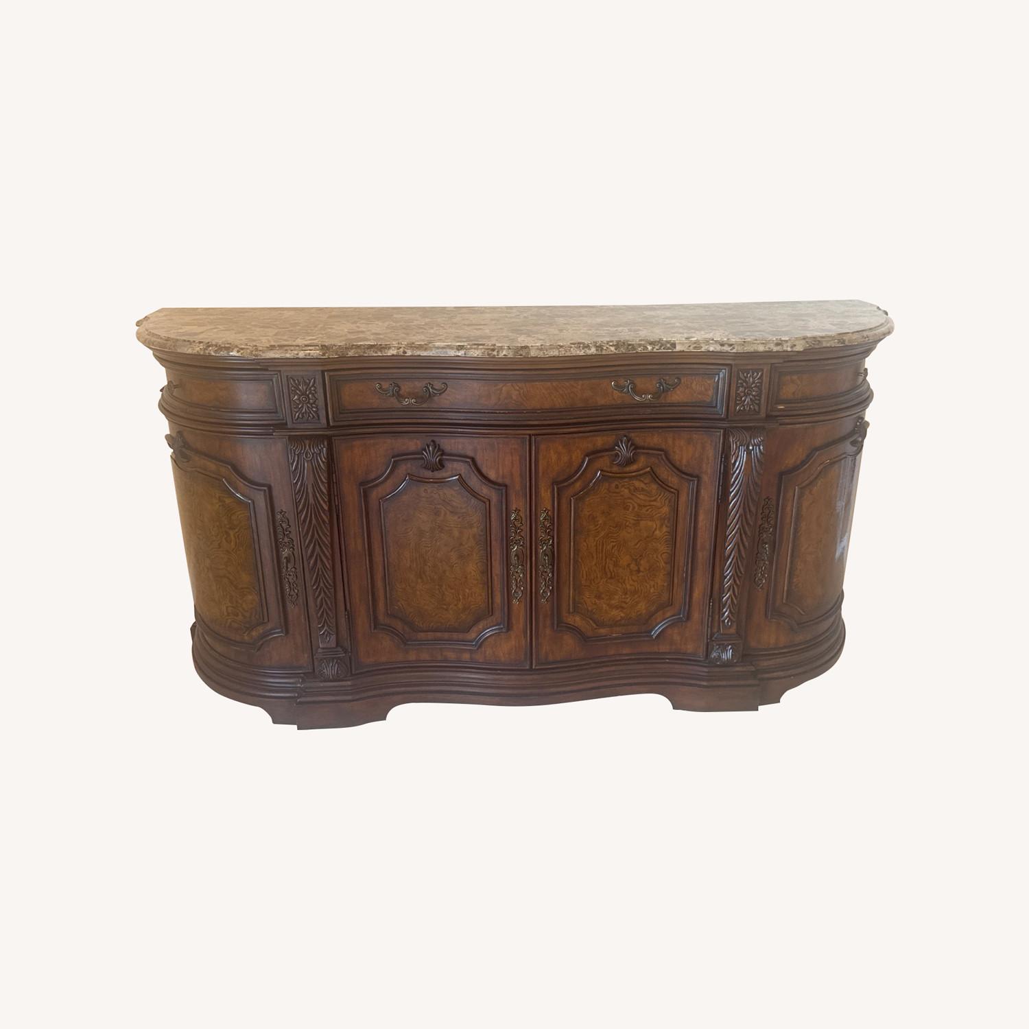 Seller's Notes:Enjoy a gorgeous storage unit perfect for a dining room armoire or as a media storage unit. Ample drawers and shelving inside.