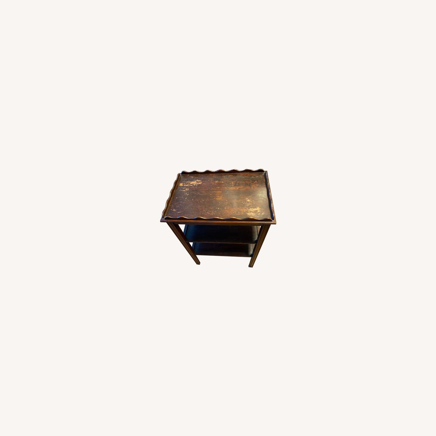 Seller's Notes:Very old dark wood side table. I'm not sure exactly how old it is - I inherited it from my grandmother when she passed away a few years ago, but my dad thinks it's 50-70 years old. As you can see from the pictures, there are some very noticeable scratches, but it still works. It has two shelves that can be used for storage/display.