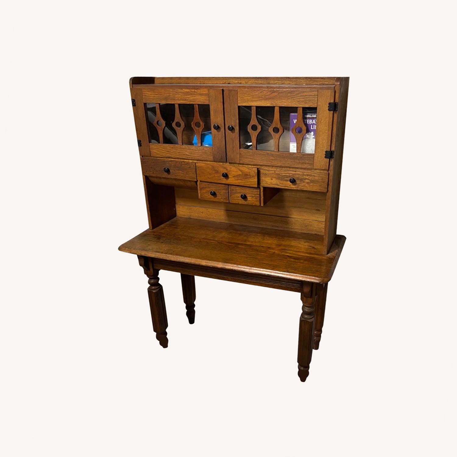 Seller's Notes:Antique desk has been in our family for over 30 years. Hutch is removable. Has been used in an entry, as a desk, just outside back door inside garage and just inside back door in place of cubbies.