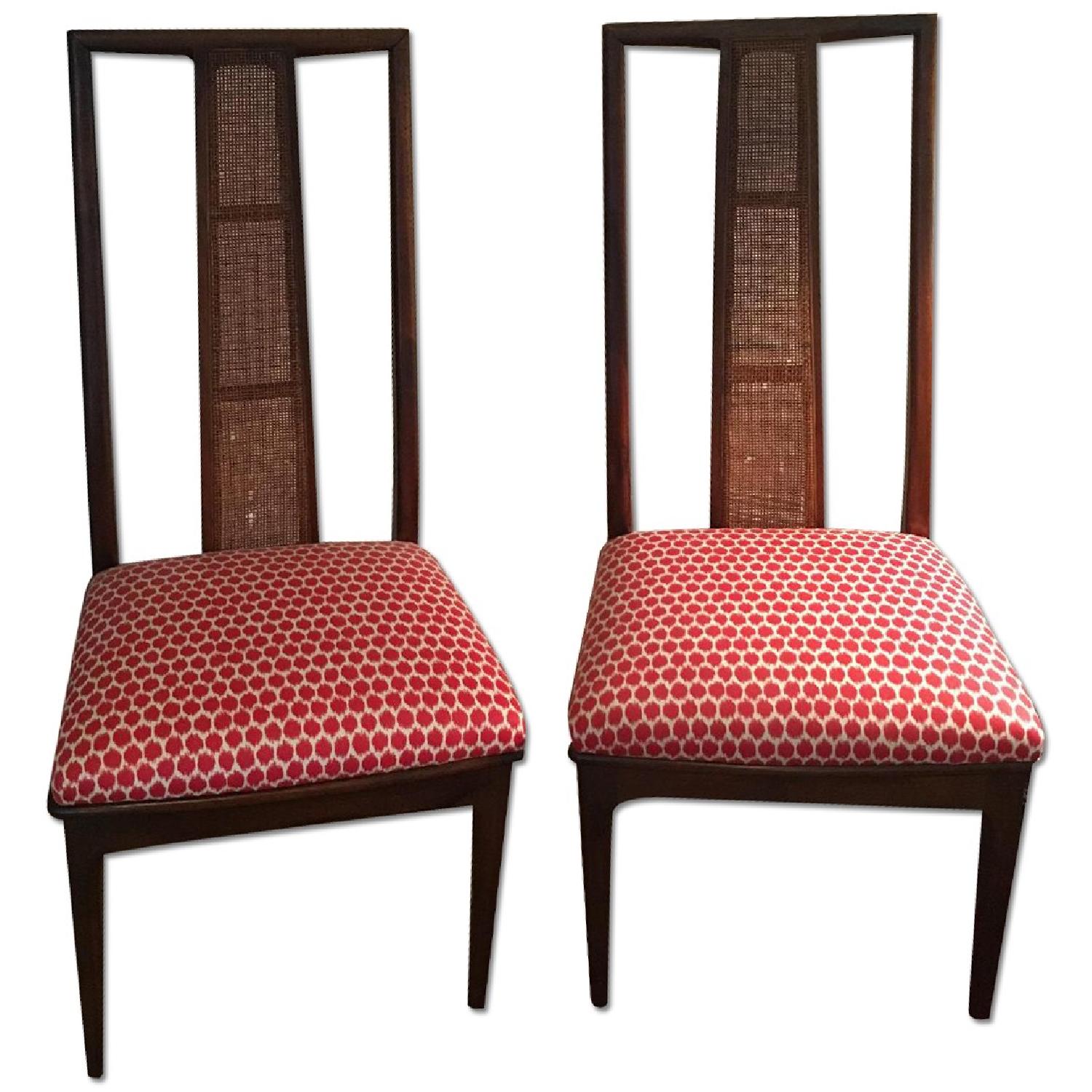 Seller's Notes:2 antique chairs bought 1 year ago at NYC store Furnish Green. Recovered w/ fabric in great condition. Minor damage to laddicework on chair backs.