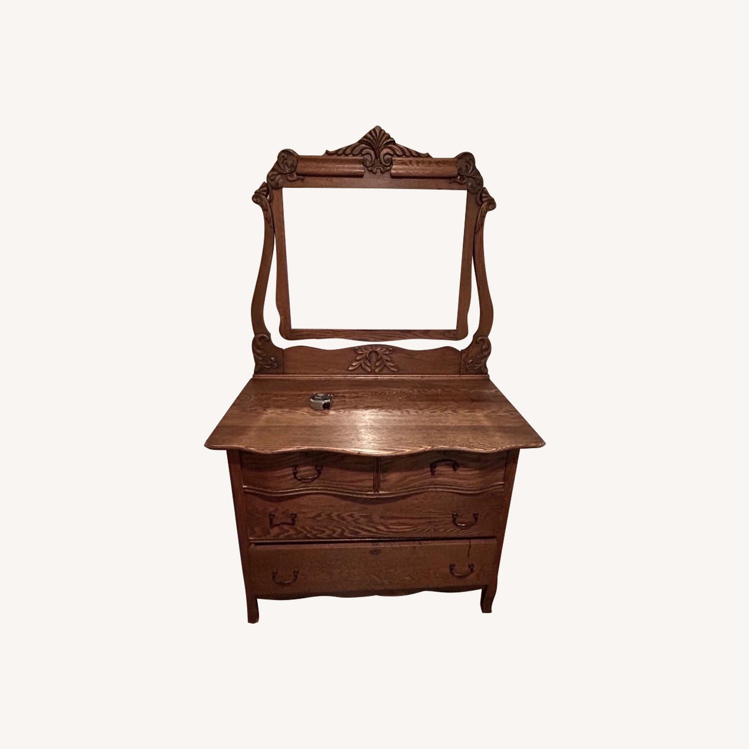 Seller's Notes:I bought this piece in 1981 when I first got married. I love this piece because it’s Tiger Oak; not very common. Still has original hardware.