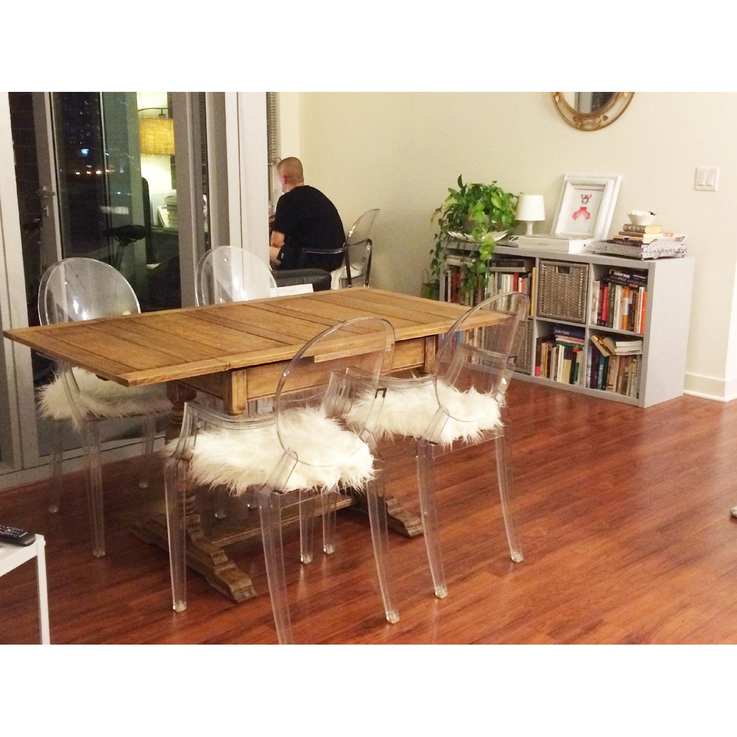 Seller's Notes:THIS IS AN ANTIQUE ENGLISH PUB TABLE HAND MADE IN ENGLAND. IT IS MADE OF SOLID OAK. SEATS 2 CLOSED AND 4 WITH EXTENSION. IT MEASURES (CLOSED) 32.71 X 35.35 X 30 (24 FROM FLOOR TO OPENING FOR CHAIR). THE WOOD IS IN BEAUTIFUL SHAPE, THERE IS ONE RED CANDLE STAIN ON THE TOP WHICH WE DID NOT SAND OFF BECAUSE IT ADDS CHARACRACTER. THE EXTENSIONS STORE UP UNDERNEATH THE TOP CENTER SECTION OF THE TABLE. THE MIDDLE TOP RESTS ON A 2 PEG DESIGN THAT LIFTS UP AND OUT TO ACCESS THE EXTENSIONS THAT THEN PULL OUT AND THEN THE CENTER IS DROPPED BACK DOWN TO COMPLETE THE EXTENSION.