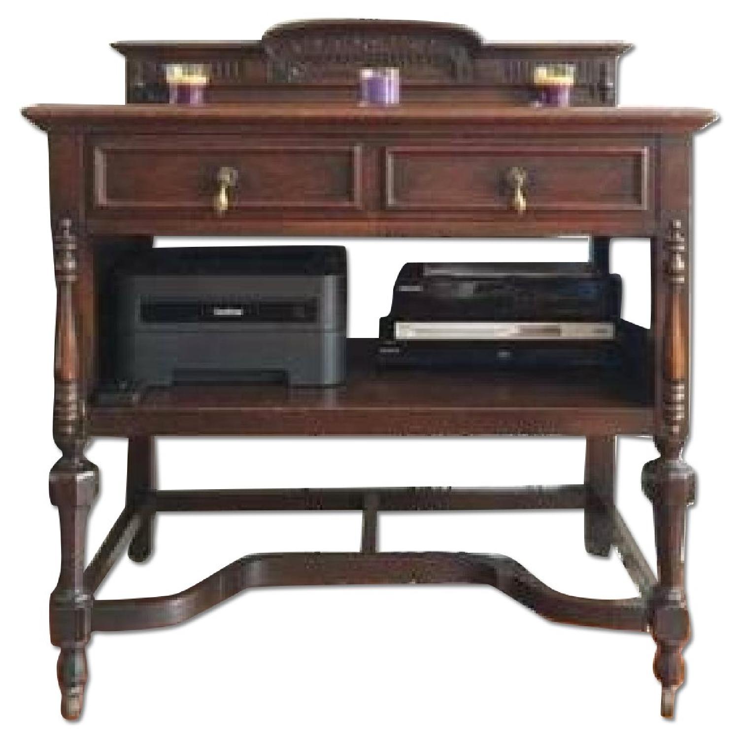 Seller's Notes:The pictures speak for themselves. This is a very old and antique but still in great condition. Solid wood with detailed carvings. This can be used for an entertainment system or a tv stand or even an entrance piece.