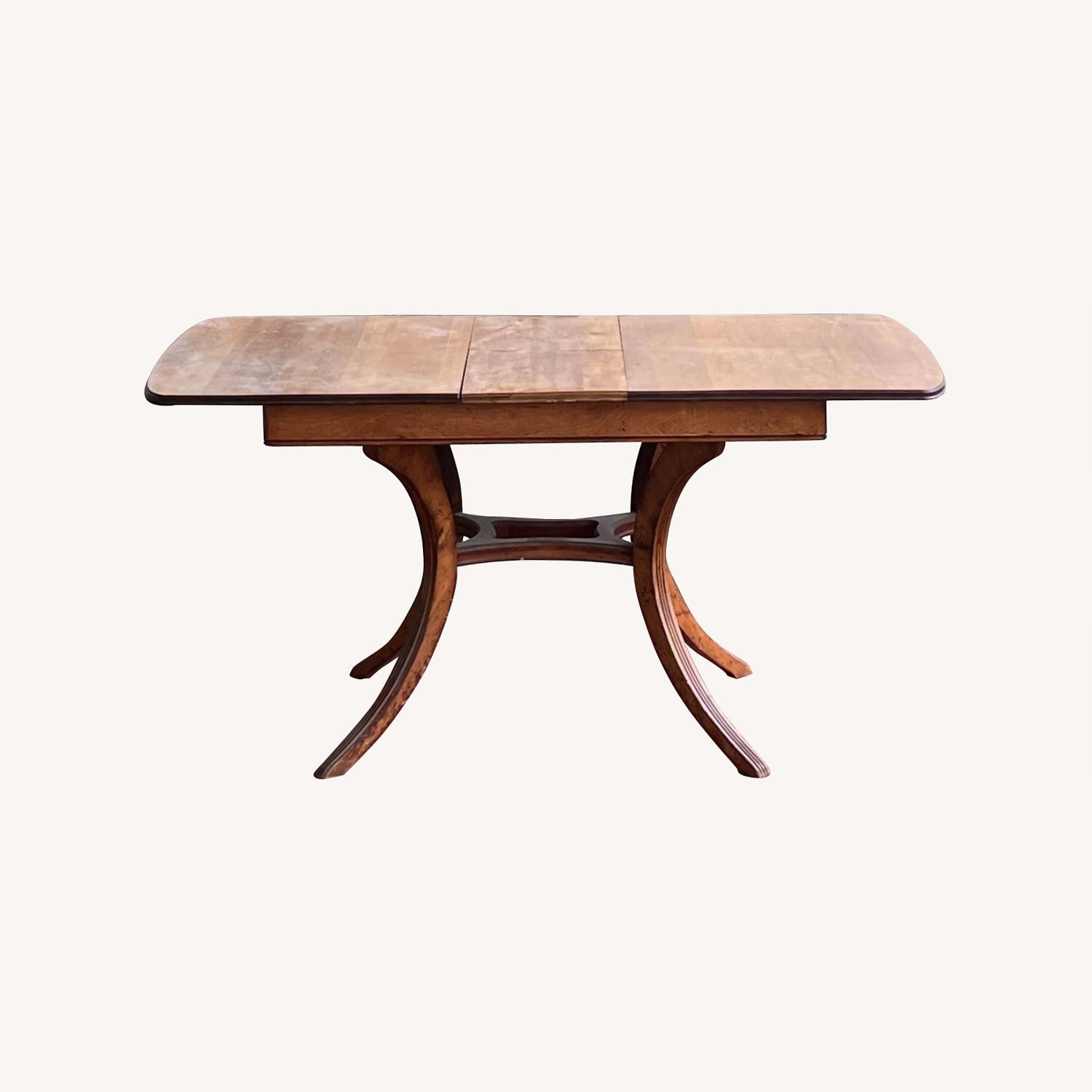 Seller's Notes:Antique mid-century rectangular dining table with rounded corners, on four sabre (curved) legs. Length can be customized to be 48 or 60 inches. Chairs not included.