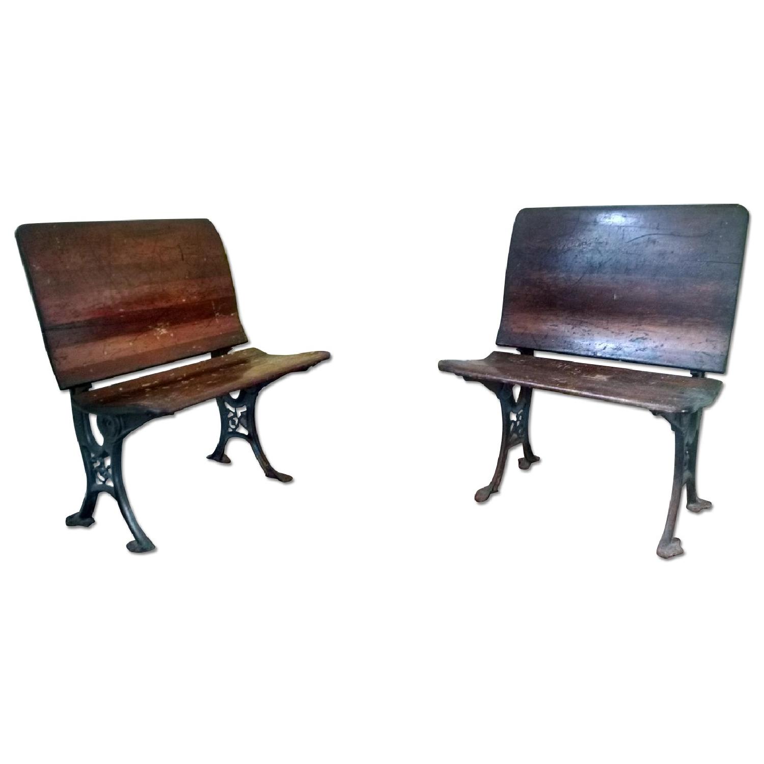 Seller's Notes:These are from the Philadelphia train station, seating height is 14", much shorter than our seating height today, as in any historical museums the seating heights were just as low. Purchased them from an owner that bought them from an antique shop in Philadelphia. Selling both benches.