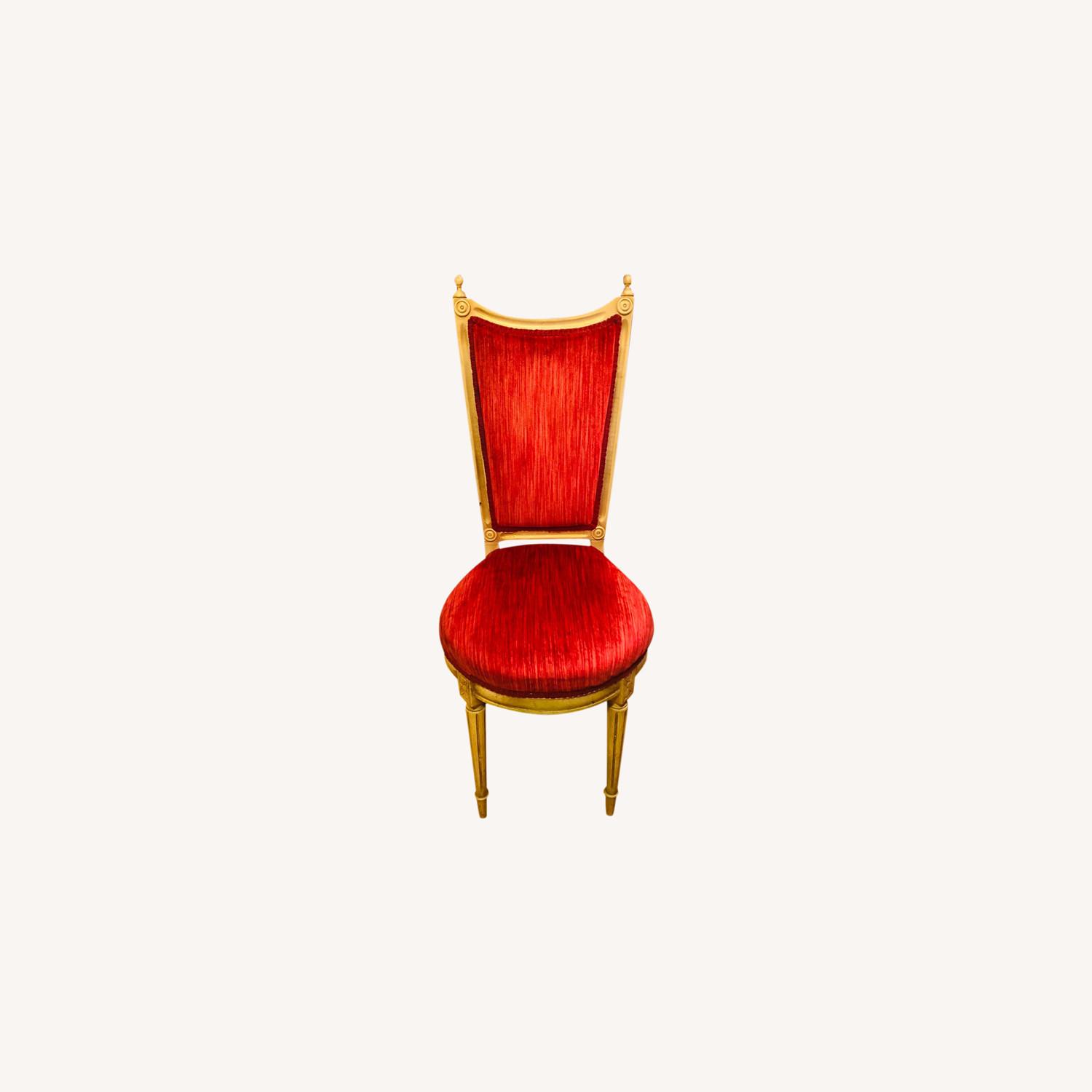Seller's Notes:I have owned this chair for over 25 years after purchasing it from an antique store, but do not know more about its history or origin. It has some slight cracks but is solid and sturdy and usable. The chair dimensions are 41 high x 18 deep x 17 wide. The velvet on the chair is in great shape.