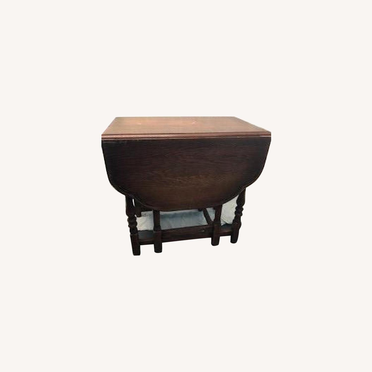 Seller's Notes:Antique, solid wood gate-leg table in need of some TLC. It makes a nice console table when folded, then easily opens up to a dining table that can easily accommodate 4 (or squeeze in more). Great space-saver. Handsome carved details. Measures 31.75" x 19" when closed, and 50" x 19" when open. Would be beautiful with some refinishing.