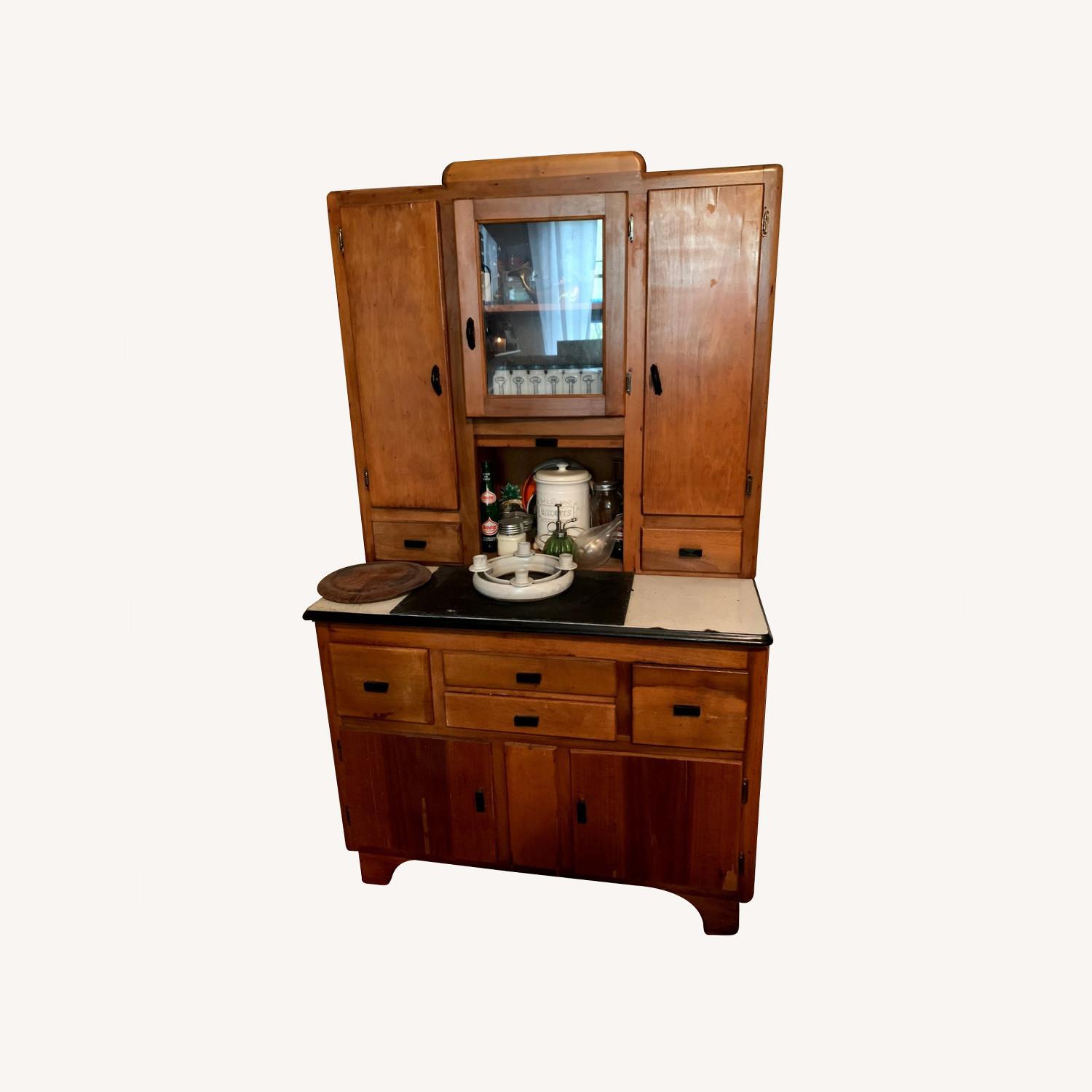 Seller's Notes:Antique Hoosier Cabinet. Some wear and tear from our last move - peeling/chipped veneer but otherwise in good working condition 40"x23"x67" Pickup only