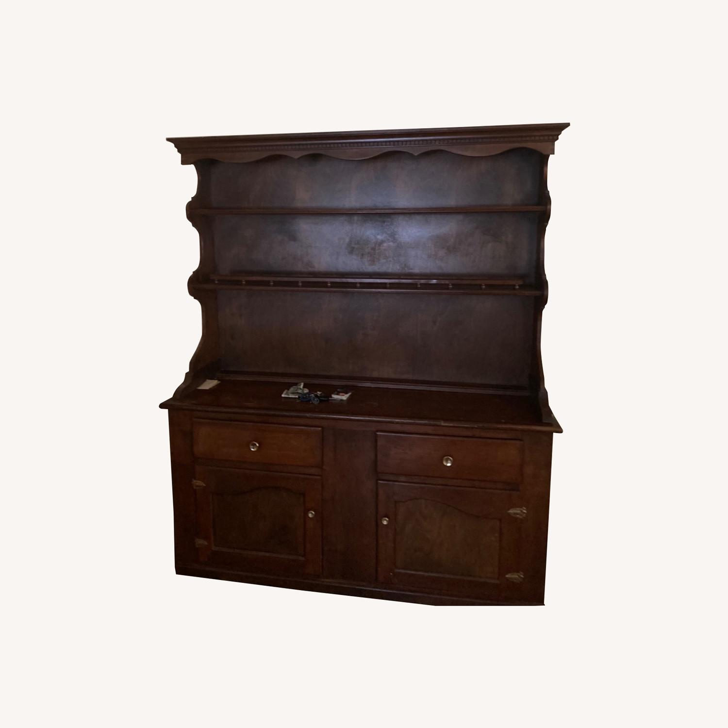 Seller's Notes:Purchased in Gettysburg. Lock and groove drawers. Two piece item Bottom drawers and top shelves.This is Pennsylvania Dutch hutch in good sturdy condition. Other than a few scratches it is in very good condition. .