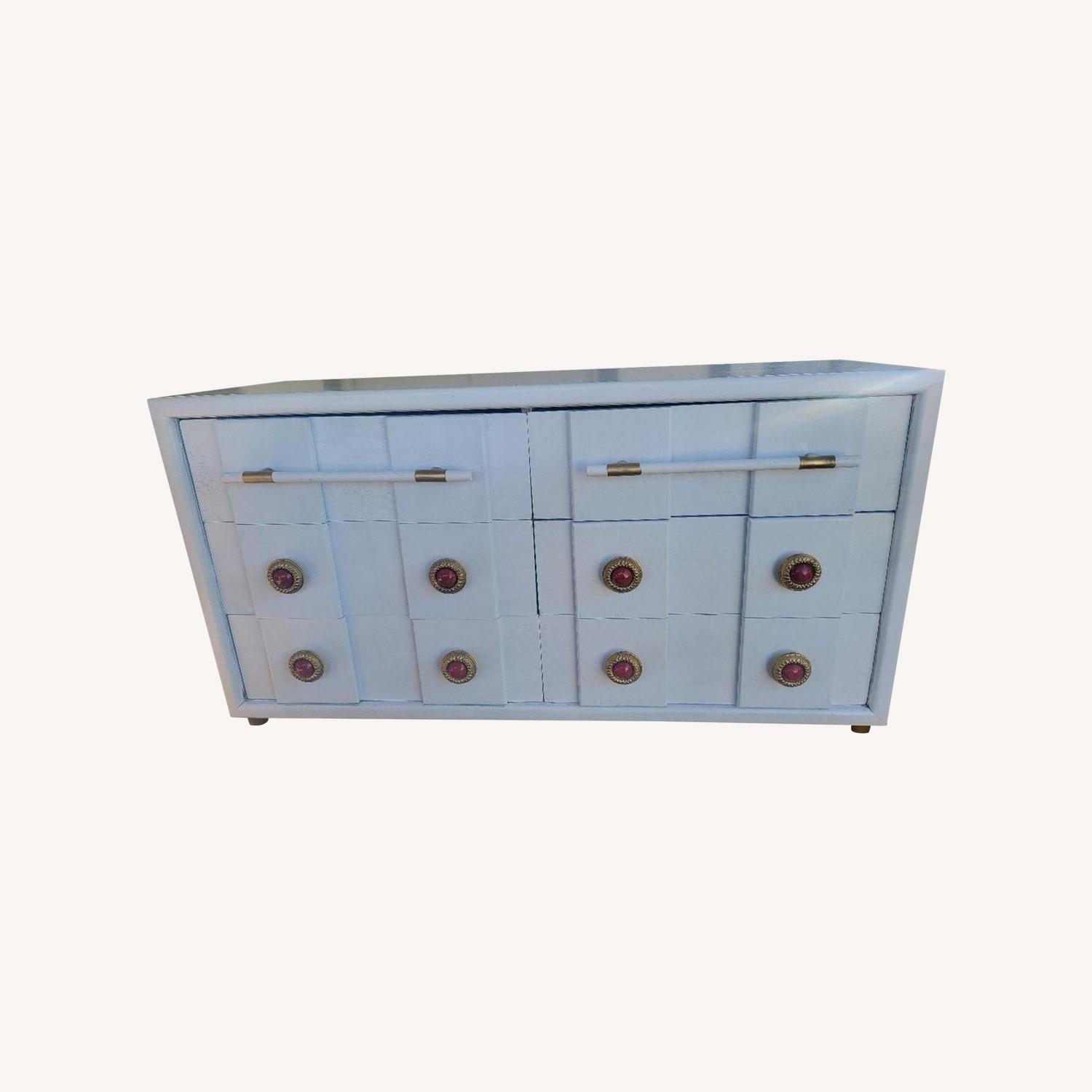 Seller's Notes:Antique solid oak dresser with 6 drawers for sale $375 OBO if picked up. VERY STRONG CONSTRUCTION. All drawers are perfectly intact and not cracked nor broken. All drawers slide smoothly. Outer surface Has been refurbished/painted in white and has minor imperfections due to wear and tear. Drawers have been painted on inside. 2 long drawer pulls on top drawers are custom made due to broken/lost drawer knobs. Other drawer knobs are original and made of wood and ceramic and have been painted gold. Dresser brand is California Manor by Karpen Manufacturing which existed between 1880's to 1951. Preserved original company stamp in the drawer and on back. See pics. This piece is perfect for storing linens, quilts, etc... Dresser is of unique design and would be a perfect accent piece for any shop or home. Dresser measures 61 1/2" wide, 32" height, 21" depth. Message for more information. Thank you for shopping.