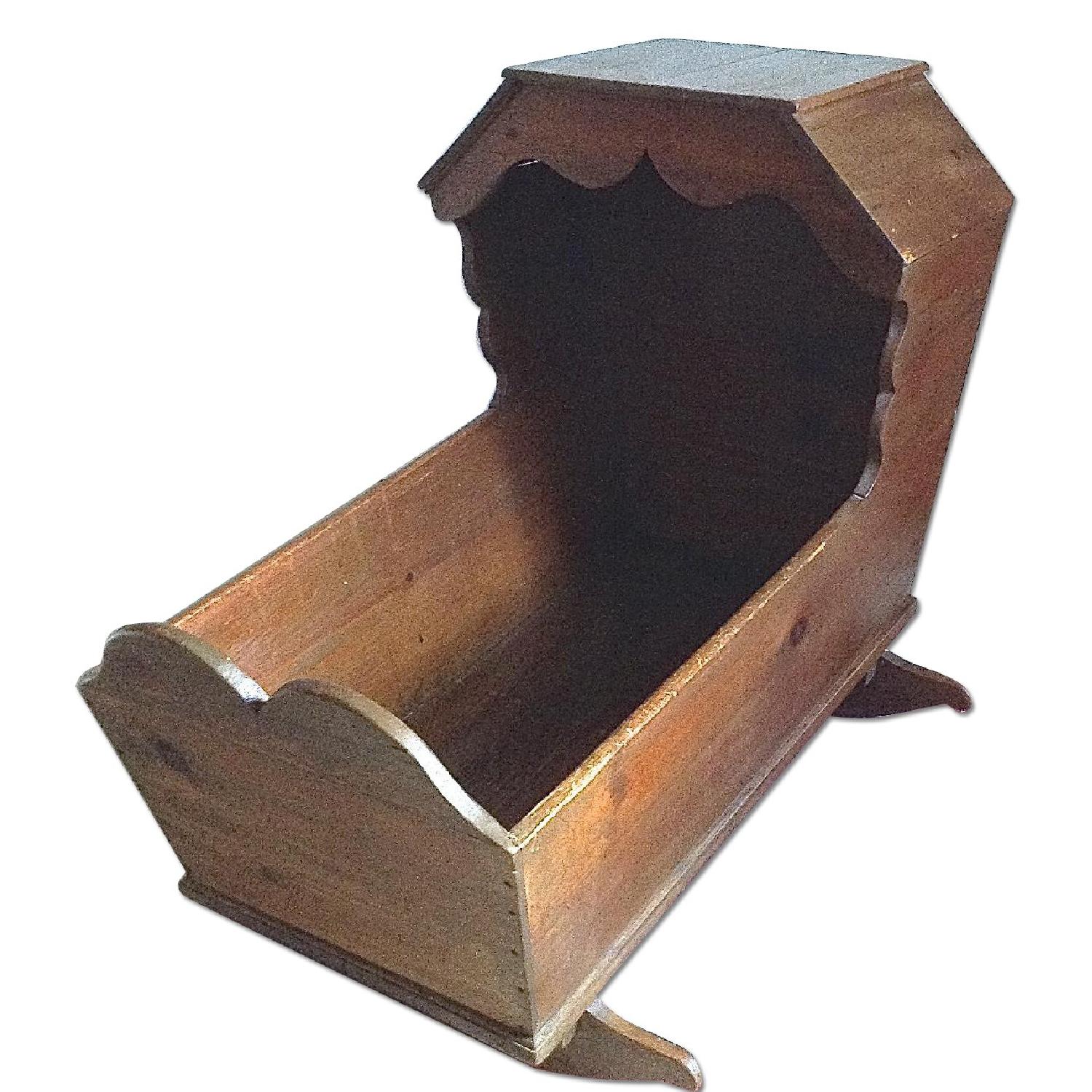 Seller's Notes:Antique Large Hooded Cradle All wood, all pegged (no nails) Stunning cutouts and workmanship Inside floor of cradle is 32” long x 16” wide x 11” walls depth is 28” with the rockers on both sides