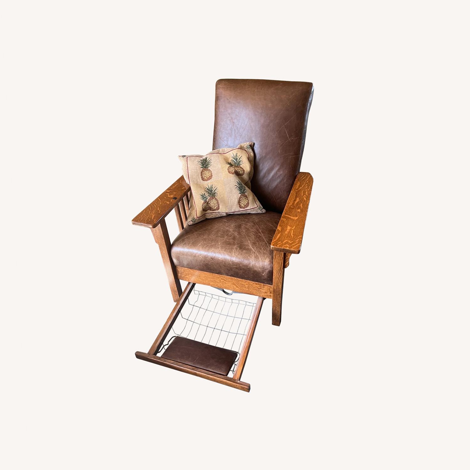 Seller's Notes:Three antique reclining chairs from Royal Easy Chairs. Manufactured between 1890-1920 in Michigan. Two are constructed from leather and wood. One is white cloth/fabric and wood.