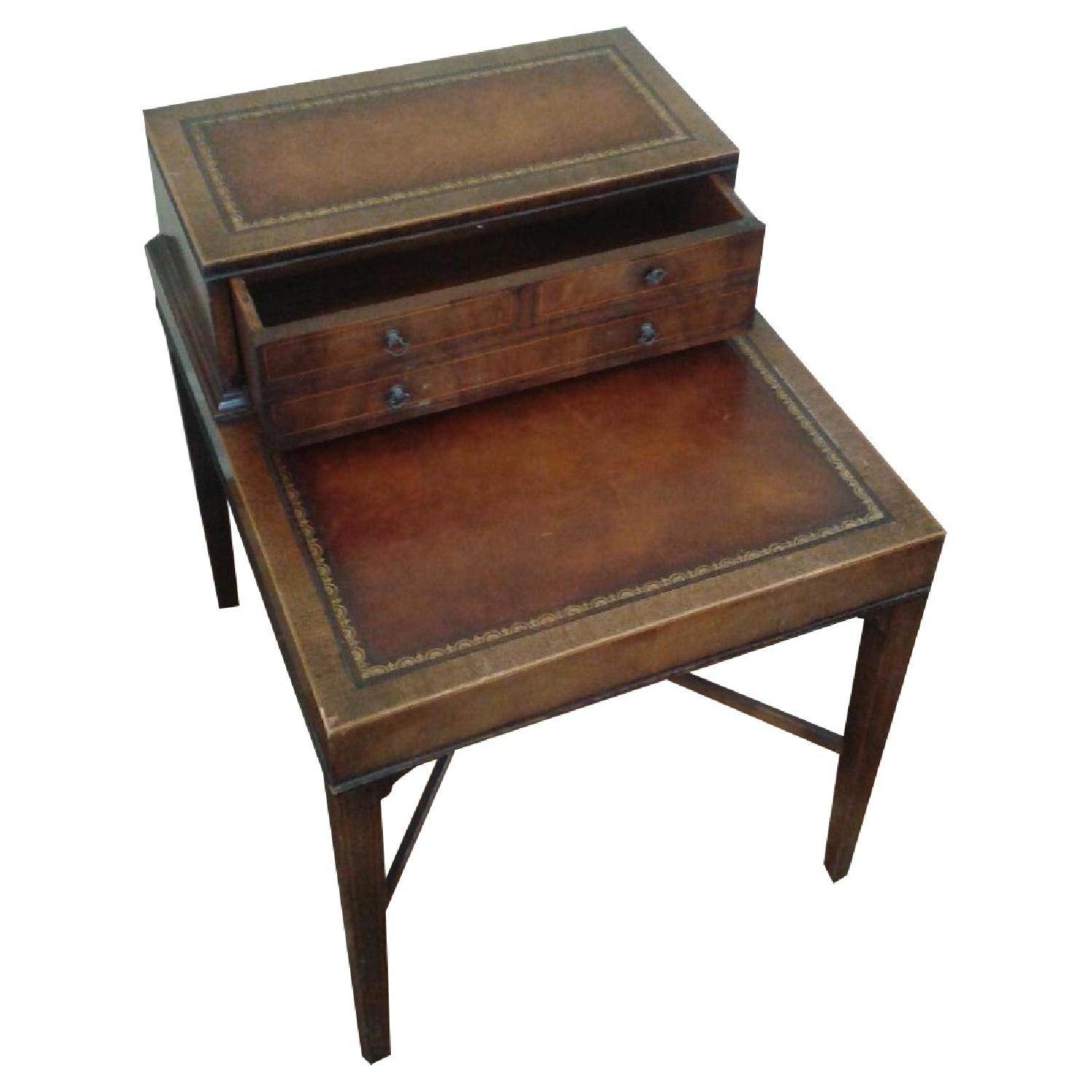 Antique Leather Cherrywood Side Table with Drawer