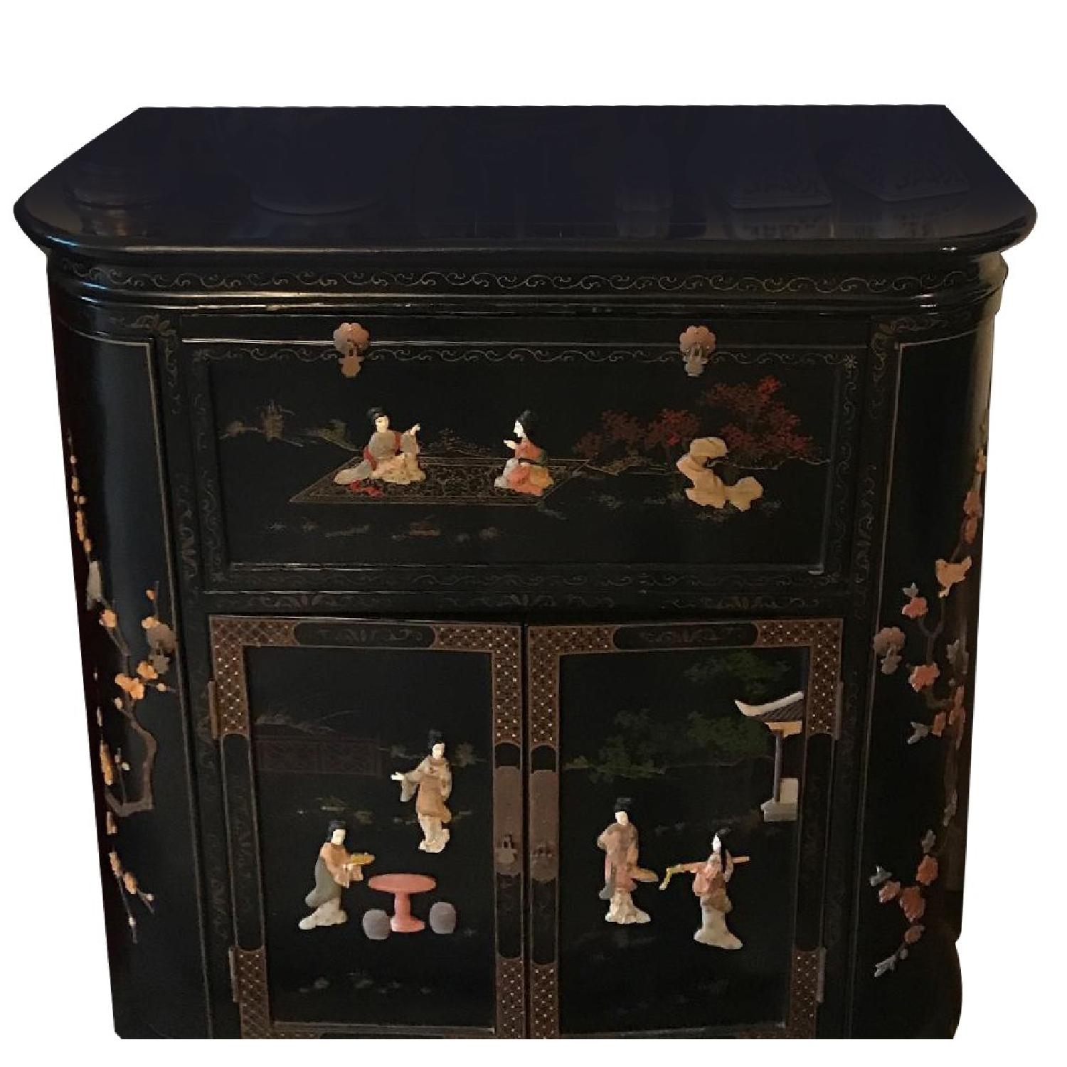 Seller's Notes:Vintage Chinese Japanese wine liquor cabinet chest mother of Pearl Geisha Dragon