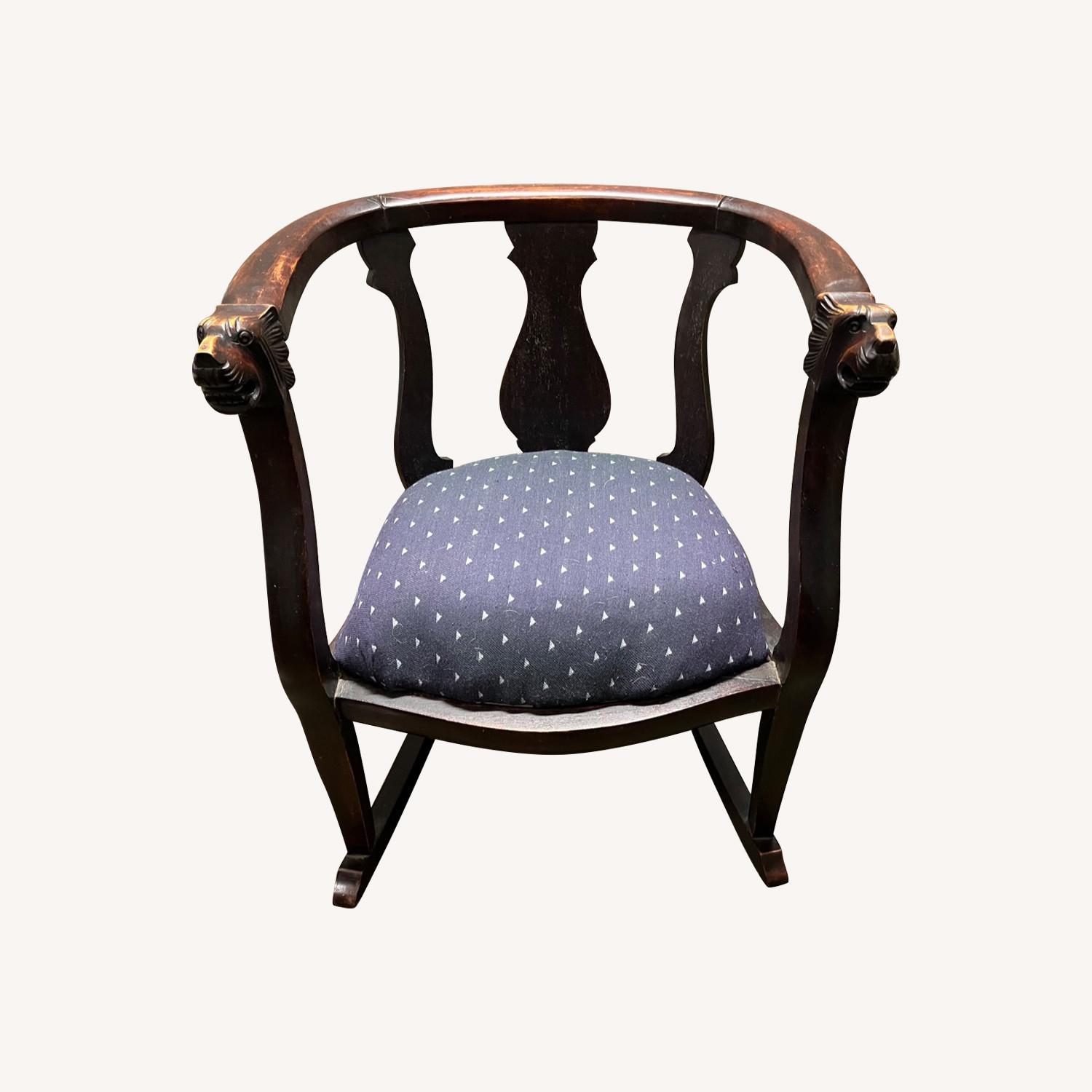 Seller's Notes:Purchased 10 years ago in Rochester, NY as part of a set of three: armchair, rocking chair, and loveseat (also listed). Beautiful mahogany wood, reupholstered.