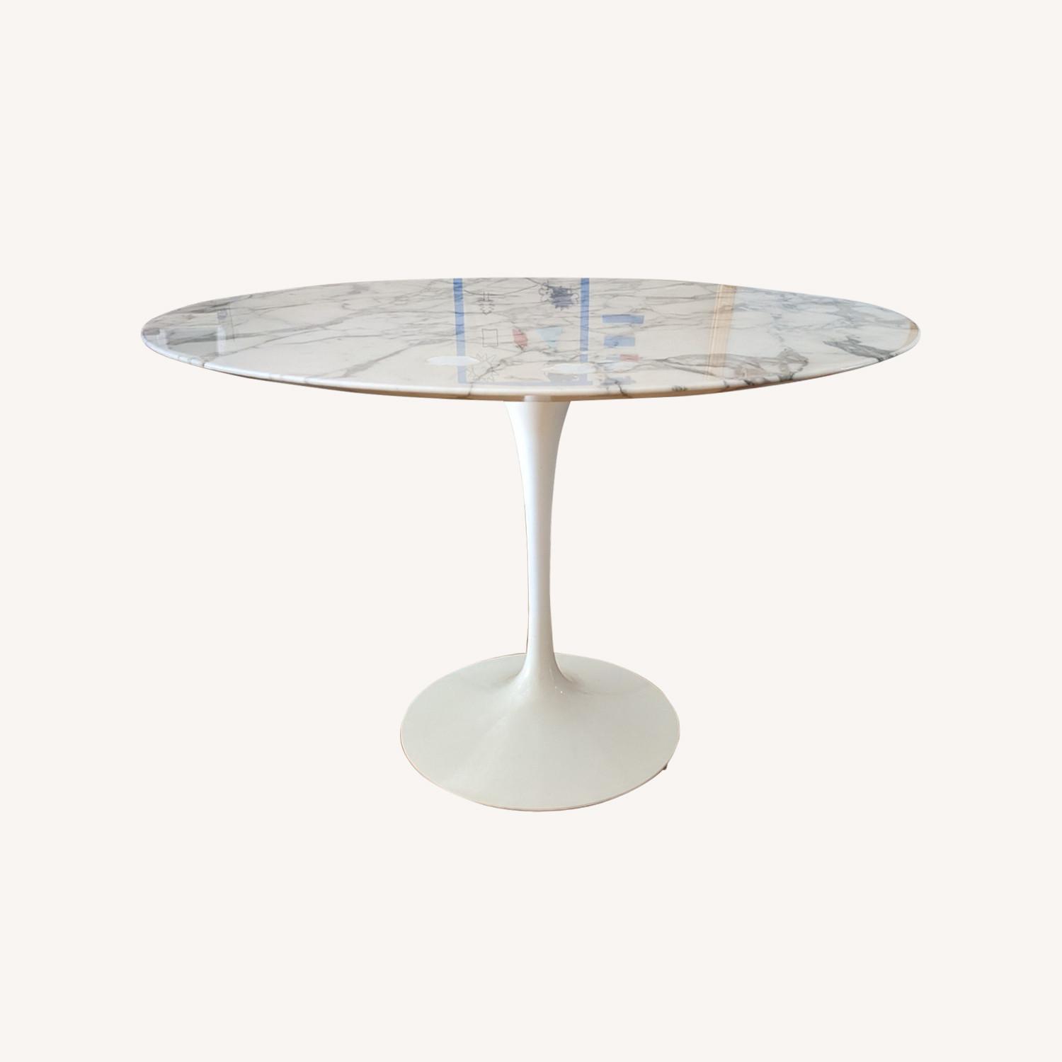 Seller's Notes:This genuine white marble 42" round top Saarinen dining table as bought at Decor NYC. We have had it for 10 years but now that our family is growing the size no longer work for our family. It is a beautiful one of kind original piece that only has some polyurethane topcoat chipping. Everything else is in amazing condition, no damage to the marble top itself or the base, but the poly topcoat could use refinishing. We are hoping it will go to a good home and will be appreciated for the gorgeous, very special piece that it is. Thank you!