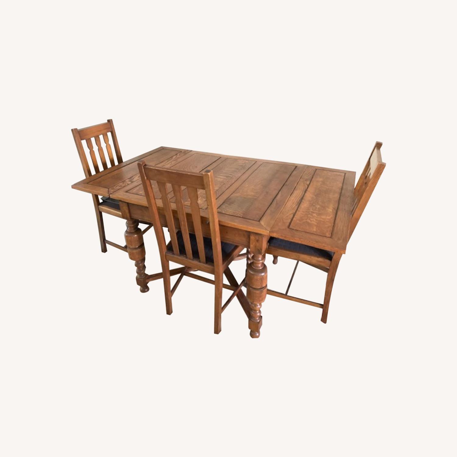 Antique Oak Expandable Dining Table + 4 Chair Set