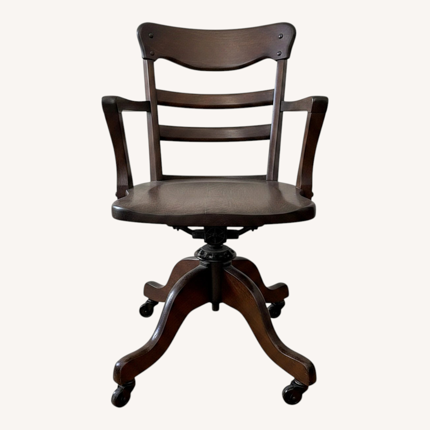 Seller's Notes:I bought this chair from a person in Texas on eBay who refurbished the chair. It’s in beautiful shape for a 100+ year old chair. It has wheels and springs so you can lean back in it. Antique Quartersawn Oak Wood Swivel Chair 1900s Office Banker Teacher