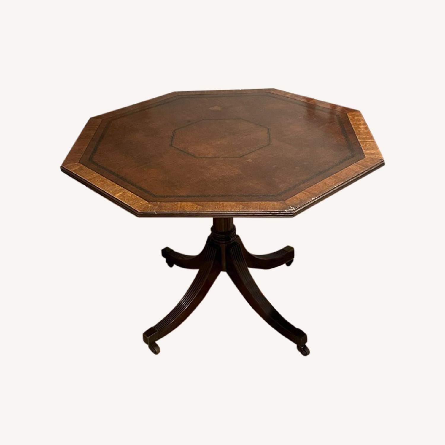Antique Octagonal Wood Leather Card Table