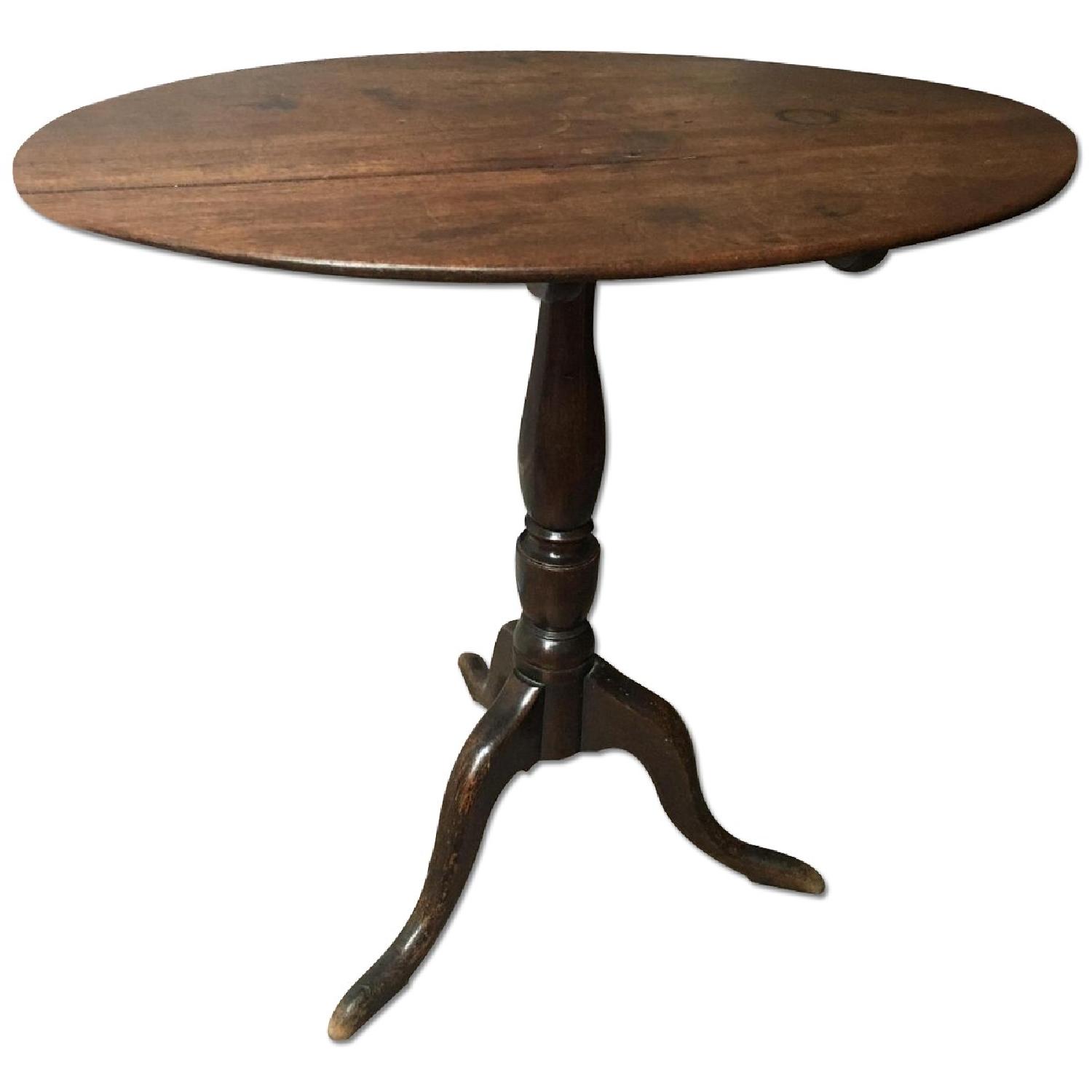 Seller's Notes:Elegant antique oval shaped side table. Dark wood. The tabletop is made from two pieces of wood, and hinged on the bottom.