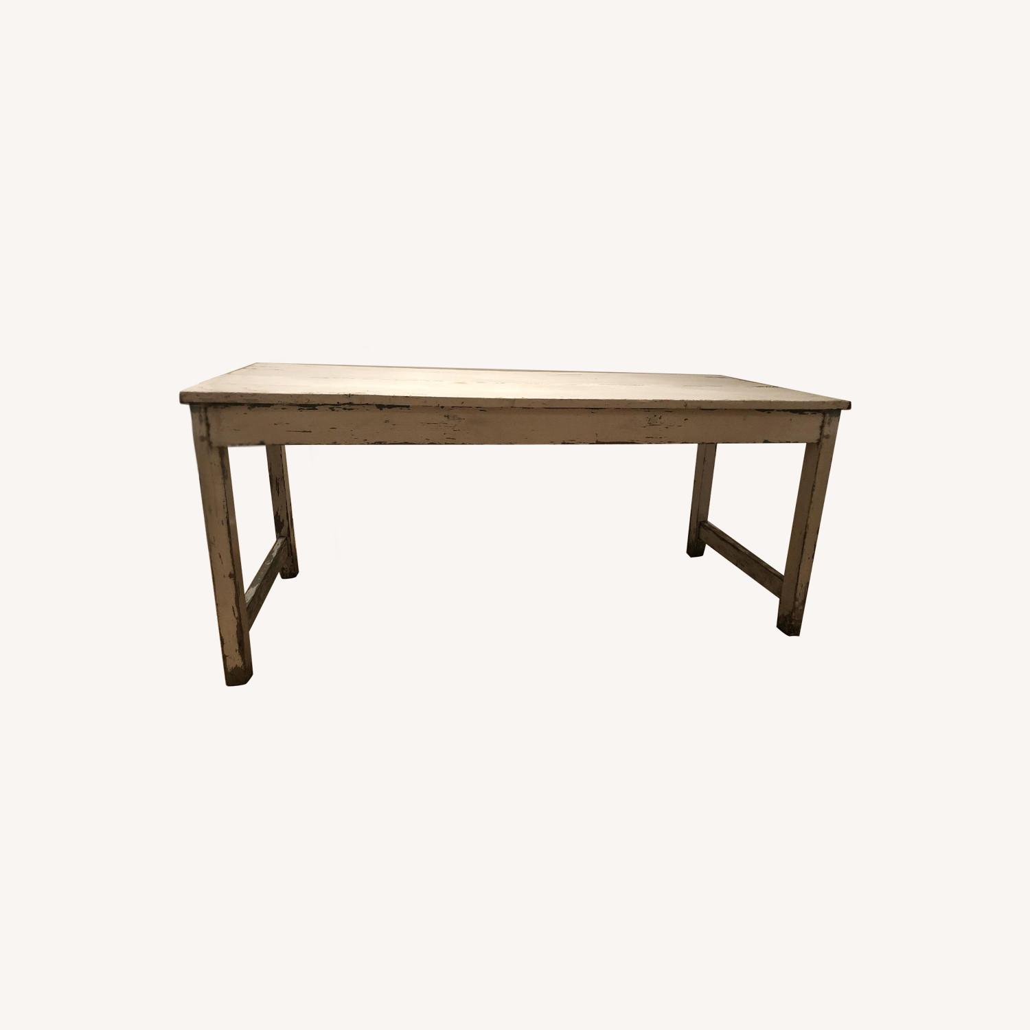Seller's Notes:Antique wood table purchased from ABC Carpet and Home 3 years ago. Previously painted white with hints of blue green chipping through. Looks the same as when first purchased. Lovely table that does not work in my apartment anymore.