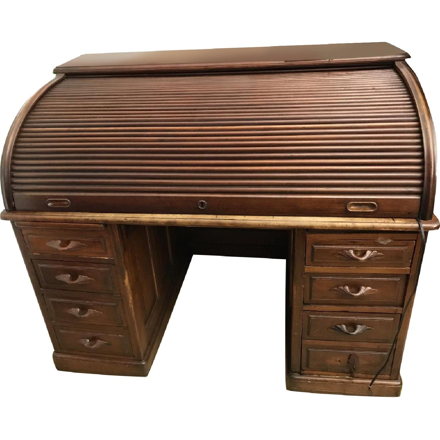 Antique Roll-Top Wood Writing Desk