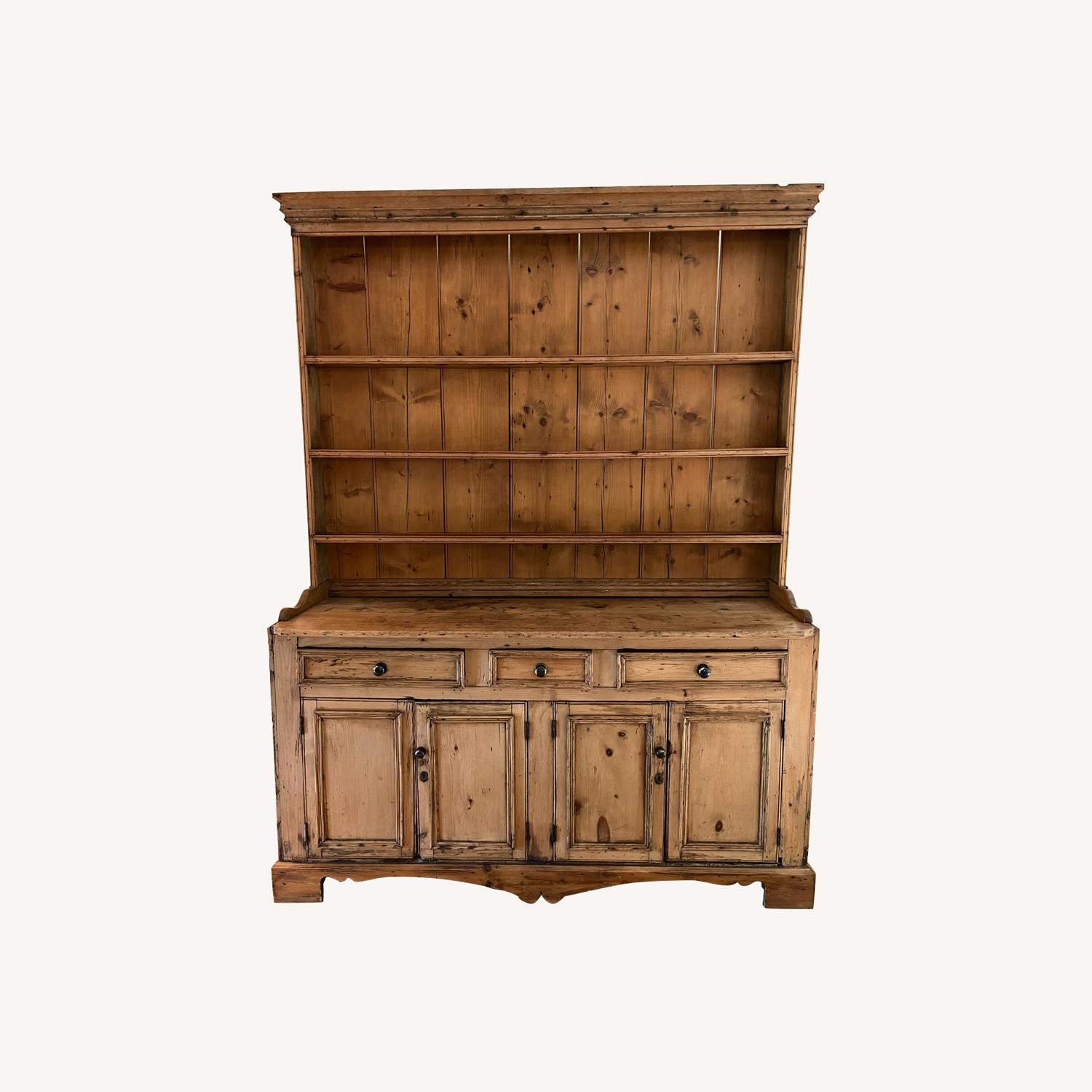 Antique Solid Pine Wood Sideboard with Plate Rack