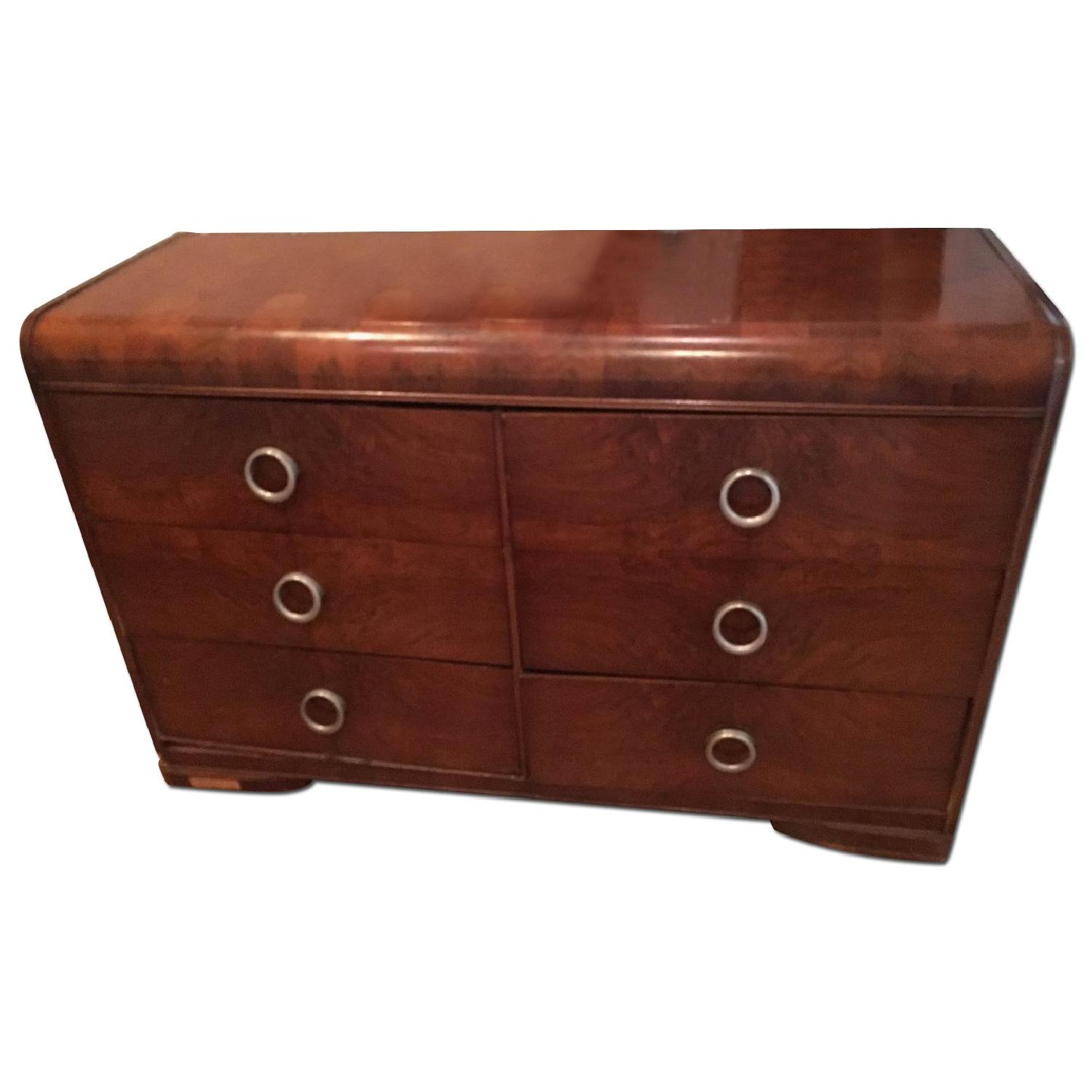Seller's Notes:This is an antique dresser, bought from the New York City Opera Shop roughly two years ago. In the subsequent years, the dresser has accumulated some normal wear and tear, but it does little more than add to the natural features of the wood, which give the whole piece a very organic feel. The drawers are heavy, sturdy, and quite deep, so they can hold an awful lot of clothing or whatever else you'd like to put in them! Note: Dimensions have been updated to be exact