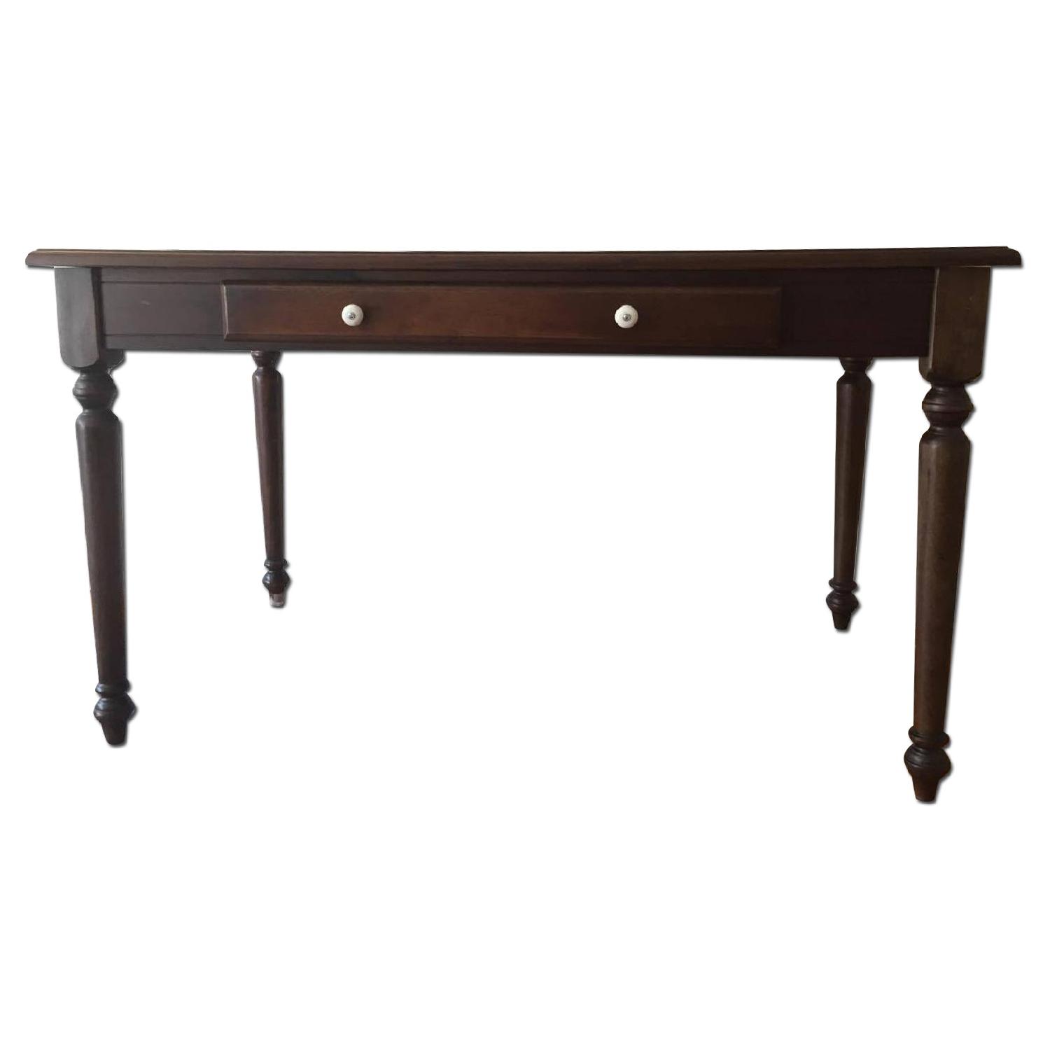 Seller's Notes:Solid Wood Desk. Moving Sale!! ANTIQUE Vintage Turned Dining Table Desk. Drower non functional. Dimensions: Length: 29 1/3 " Width: 53 5/3 " Height: 31 1/2 " Length: 75 cm Width: 135 cm Height: 80 cm