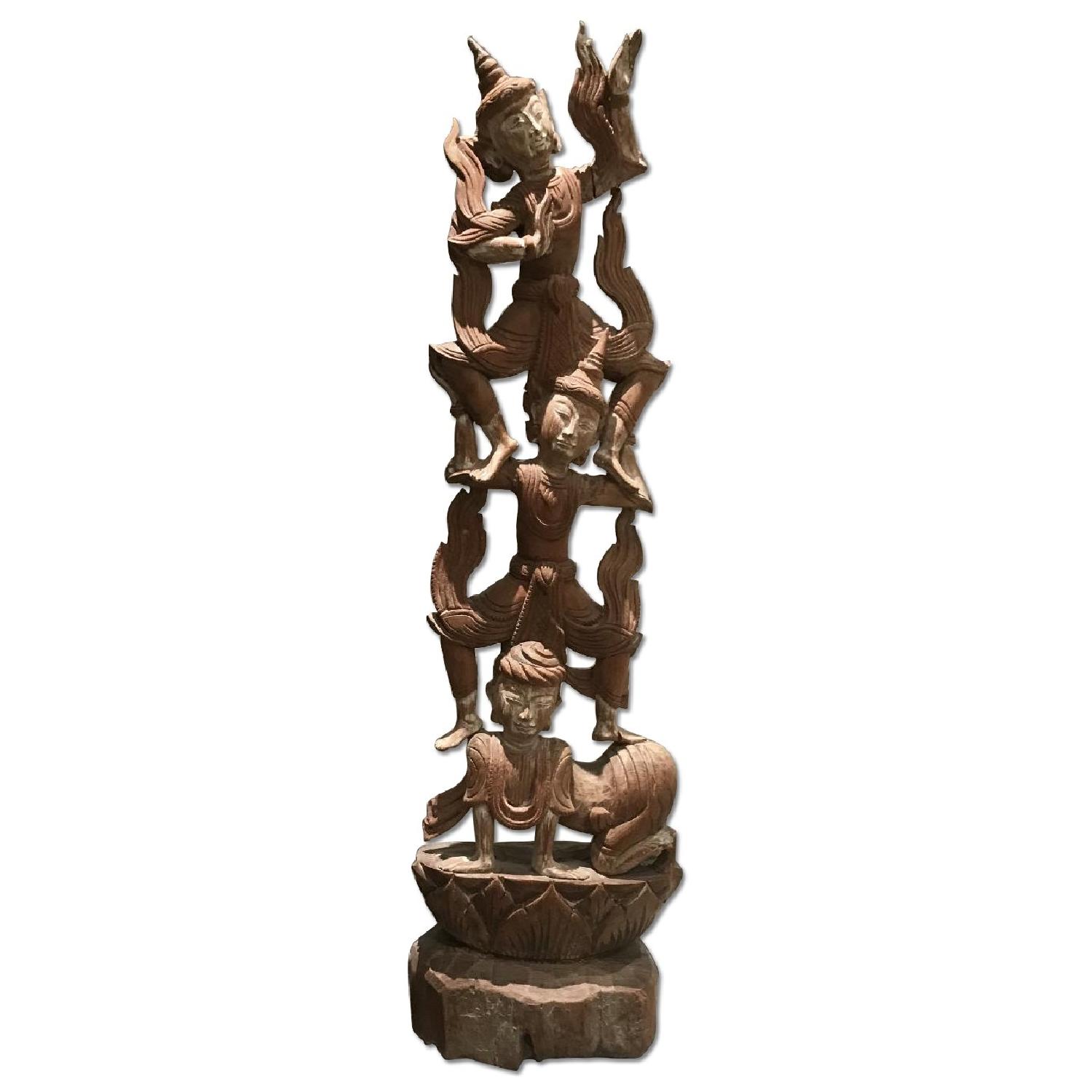 Seller's Notes:On my travels to Thailand many years ago, I came across this magnificent antique wood statue of figures standing on each other shoulders. It is whimsical and charming. It is all in natural wood shades and no paint which makes it very dramatic