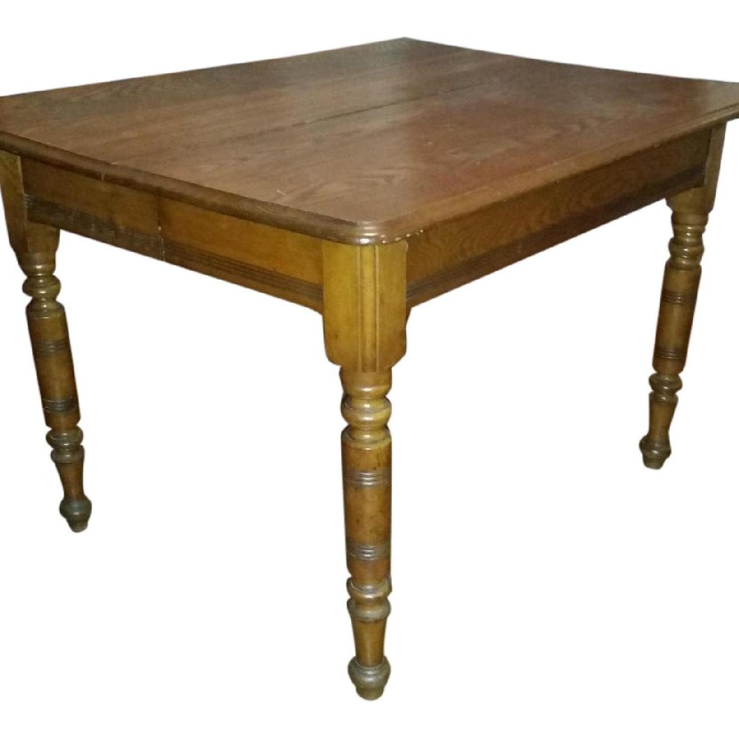 Seller's Notes:Square Oak Table, Tiger oak, Pennsylvania Victorian Extension table. The extra leaves are missing, but will extend to seat 10 people. Great find. Center Pedestal leg included. Excellent used condition.