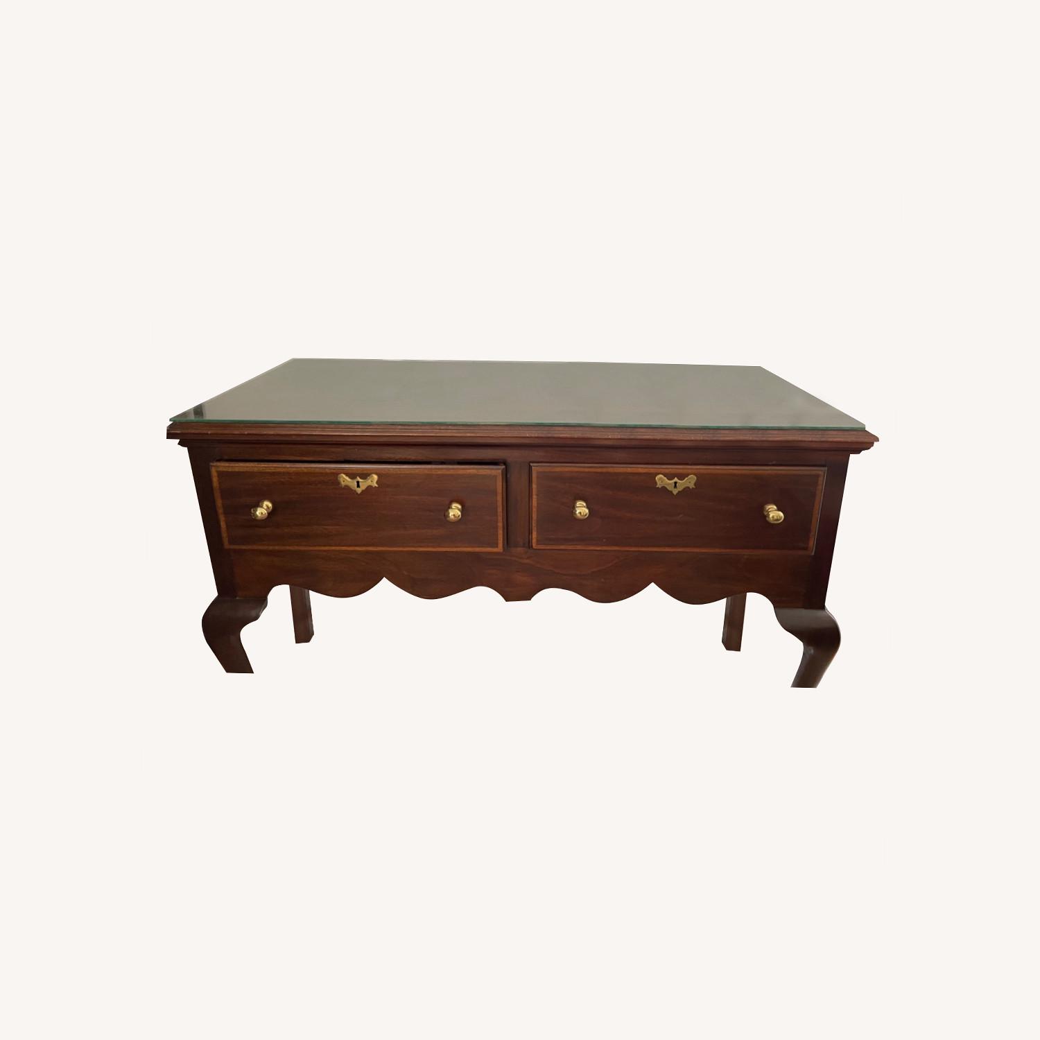 Seller's Notes:This sideboard belonged to my grandmother and is around 50-60 years old. We have been using it to store our silver. The custom-cut glass cover is included. There are very minor scratches but the piece is in remarkably good condition.