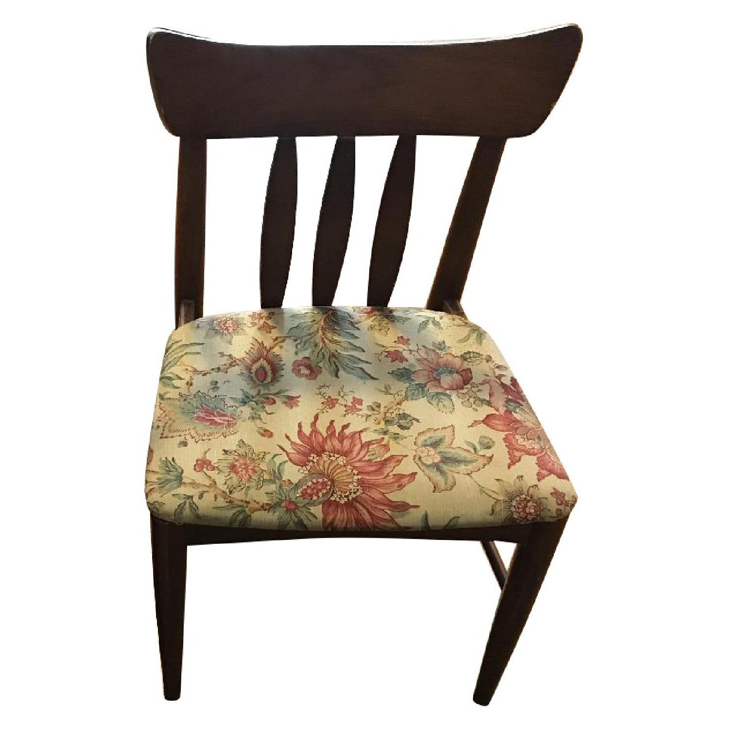 Seller's Notes:Beautiful antique wooden dining chairs with upholstered cushions with floral design.