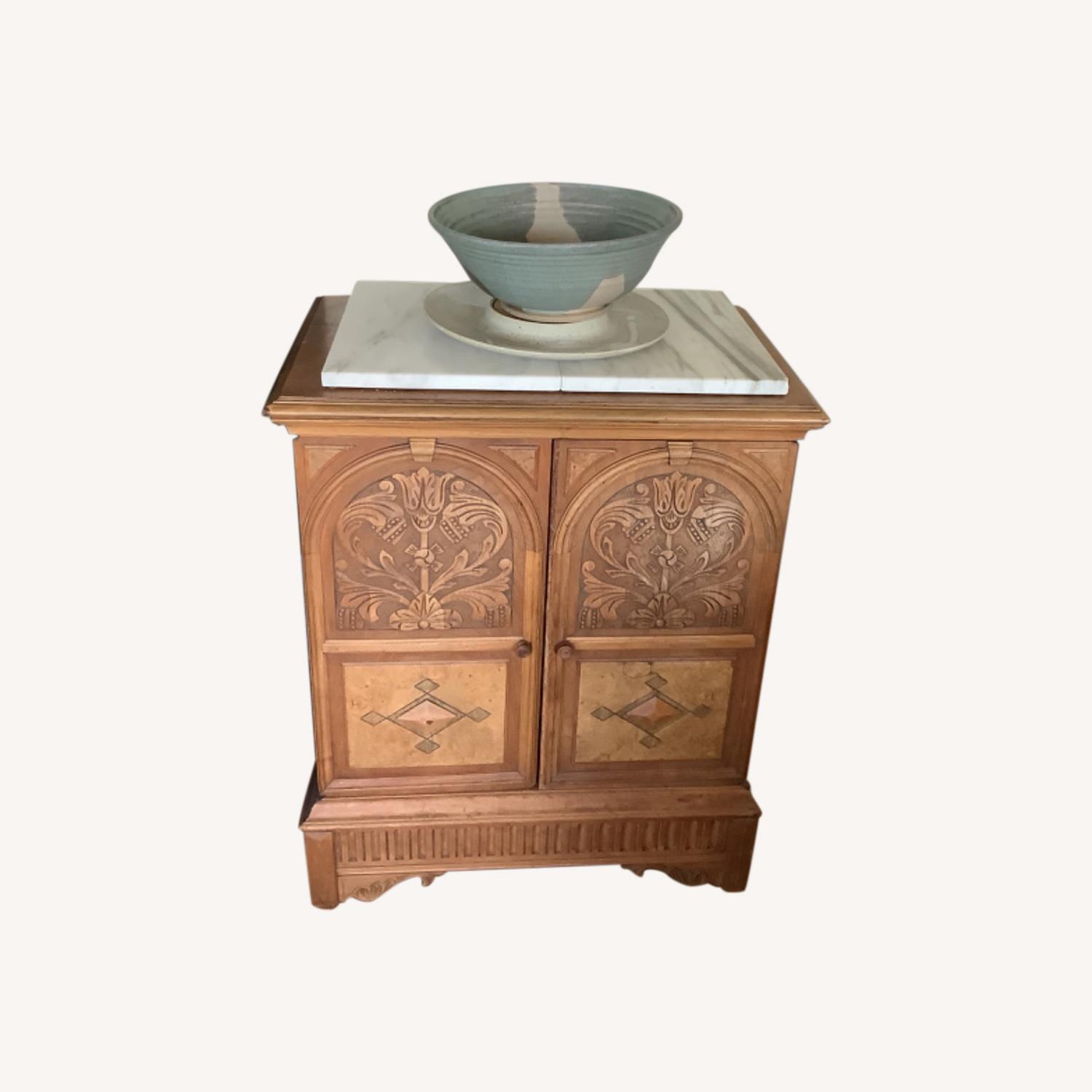 Seller's Notes:Antique walnut cabinet with two interior shelves. No back panel. Top discolored.