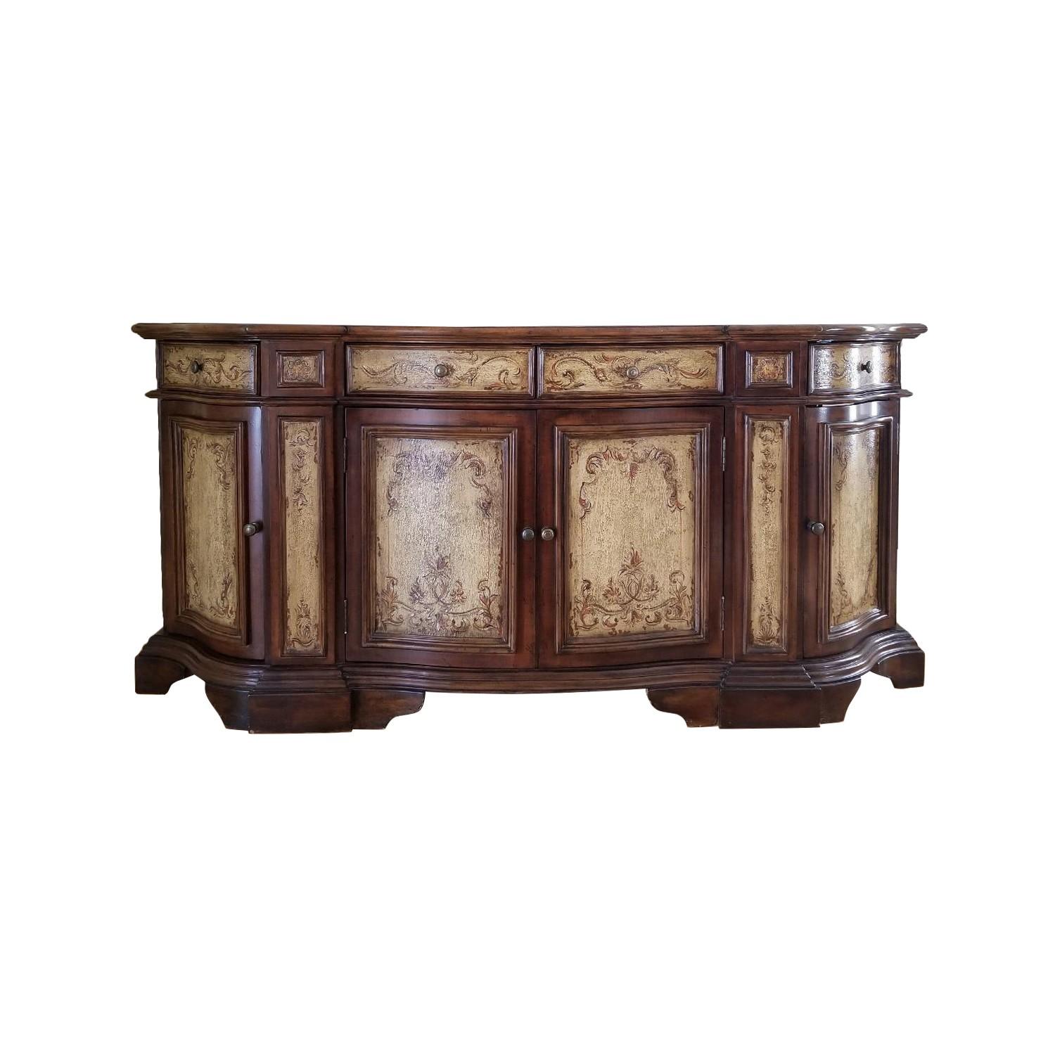 Antique Wood Buffet w/ Hand Painted Panels