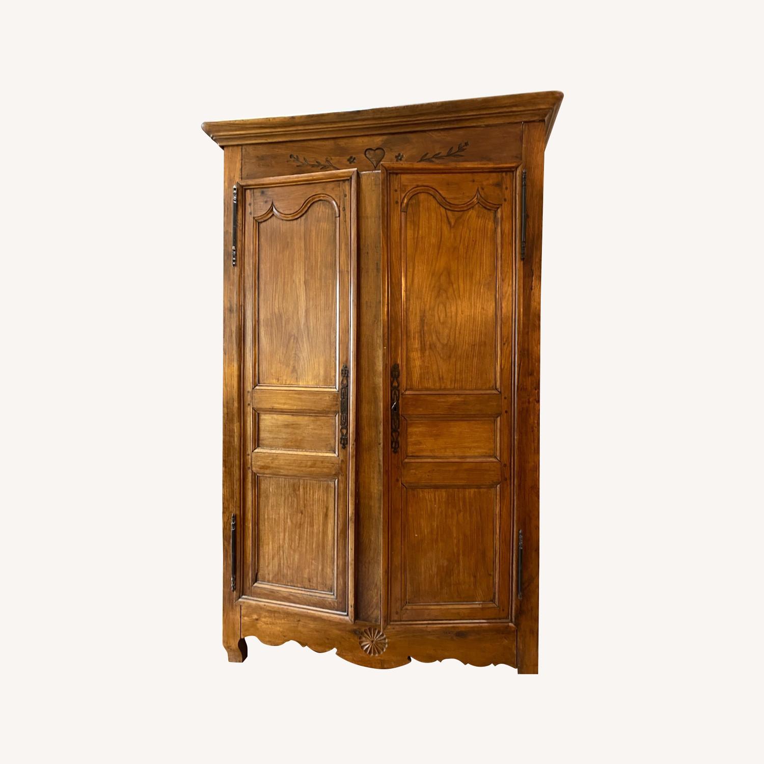 Seller's Notes:Antique wooden armoire, super beautiful and functional Walnut wood finish Small damage on top, pictured Huge discount on price (originally very expensive) because hard to move - need professional movers to take it down 7 flights of stairs