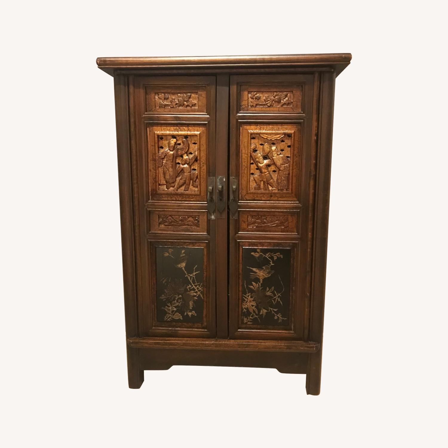 Antique Wooden Cabinet with Engraved Doors