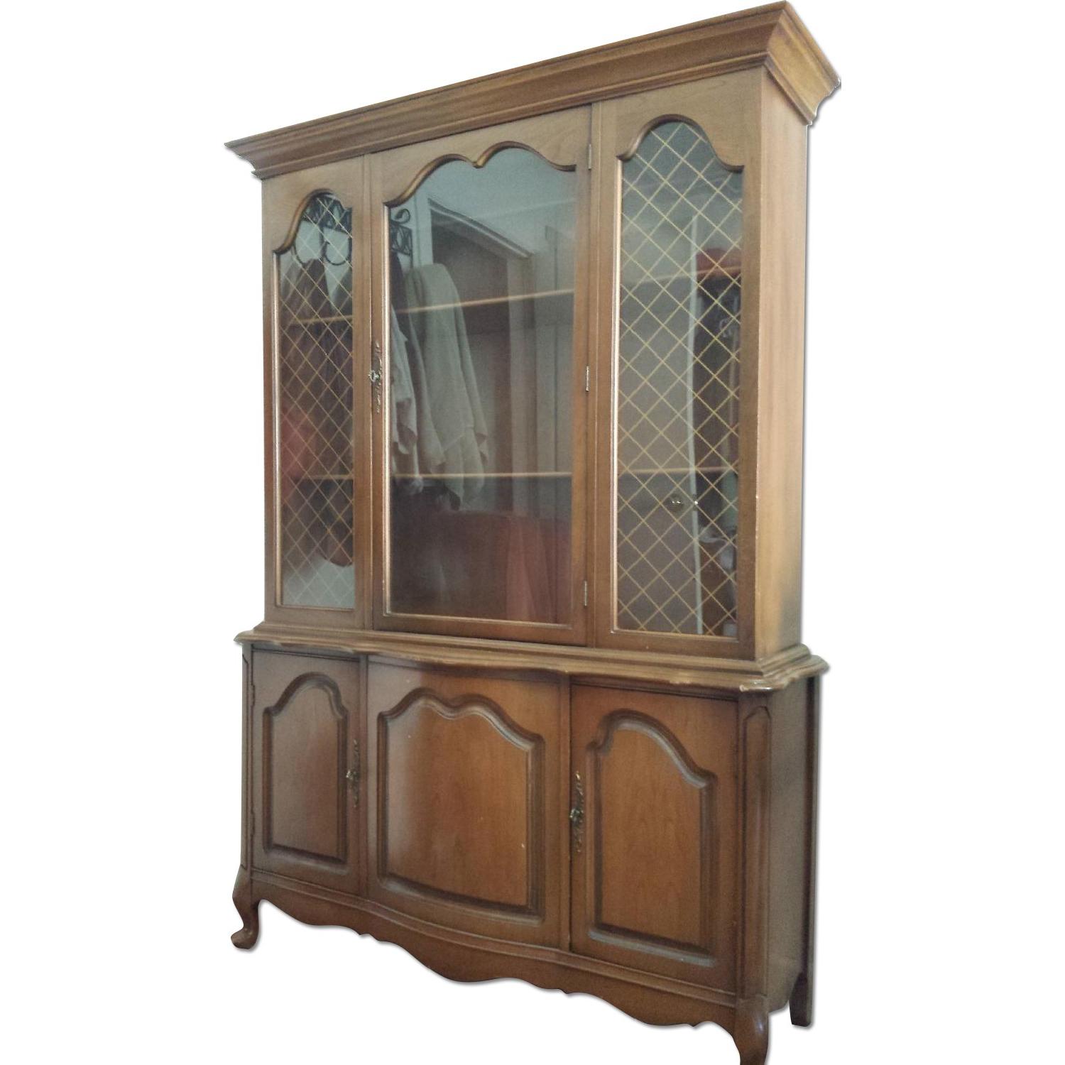 Antique Wooden China Cabinet with Glass Doors