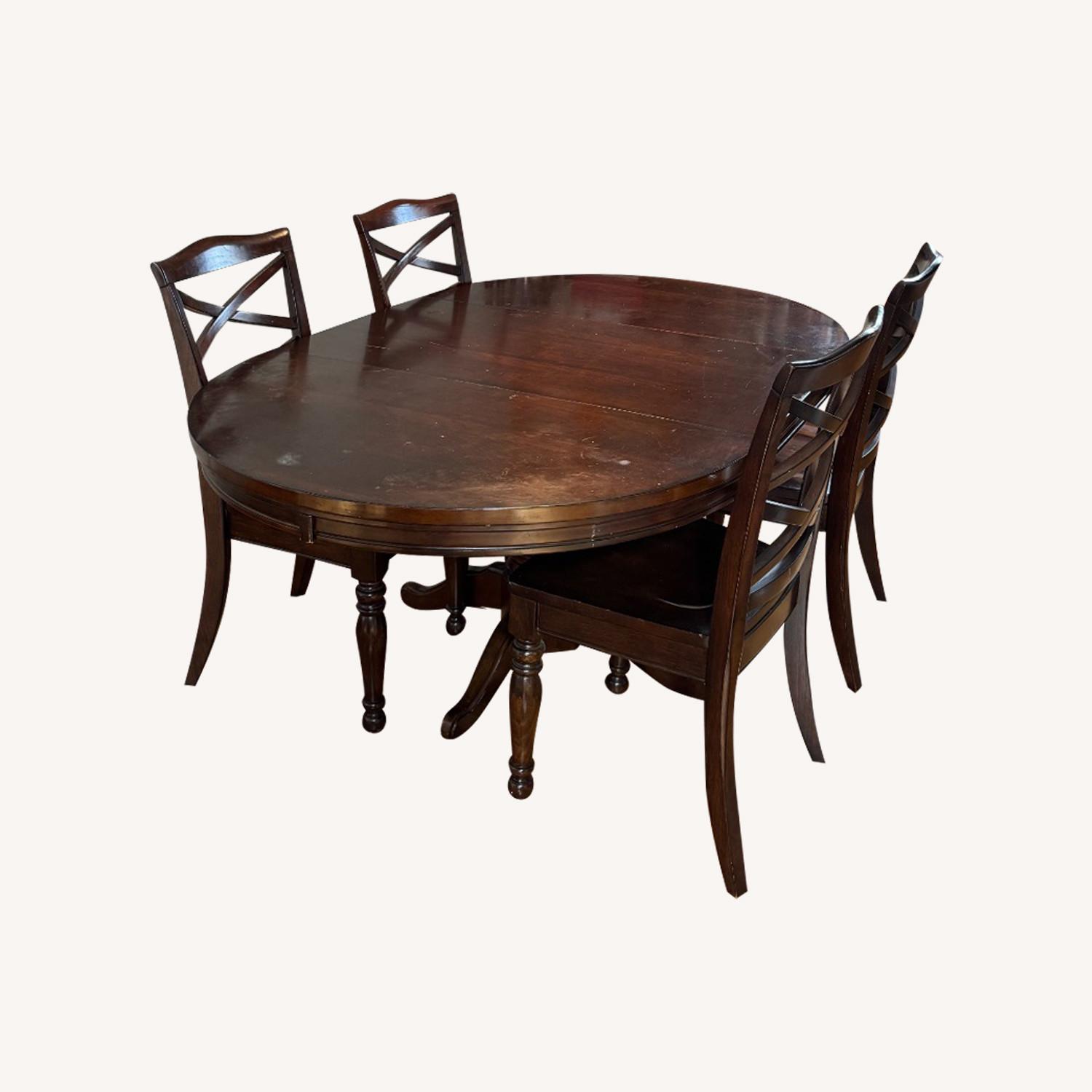 Seller's Notes:I'm unfortunately moving and everything needs to go by 3/31! This is an old antique piece made of real wood. You will be able to tell because it's heavy. This piece in particular has a lot of character (which includes some blemishes and scratches), so it would fit well as a true antique or mid-century piece. It's basically the exact opposite of flimsy Wayfair or Ikea furniture! The table features a middle section that is easily removable and turns the dining table into a perfect circle (48x48 instead of 72x48).