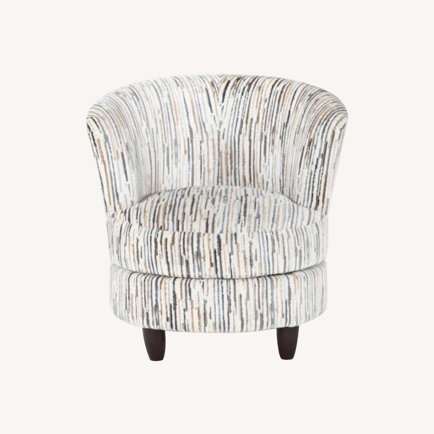 Seller's Notes:Apollo Multicolor Fabric Swivel Accent Arm Chair With Espresso Finish | Made in the USA | Slipper | Armless | Armchair | Lounge