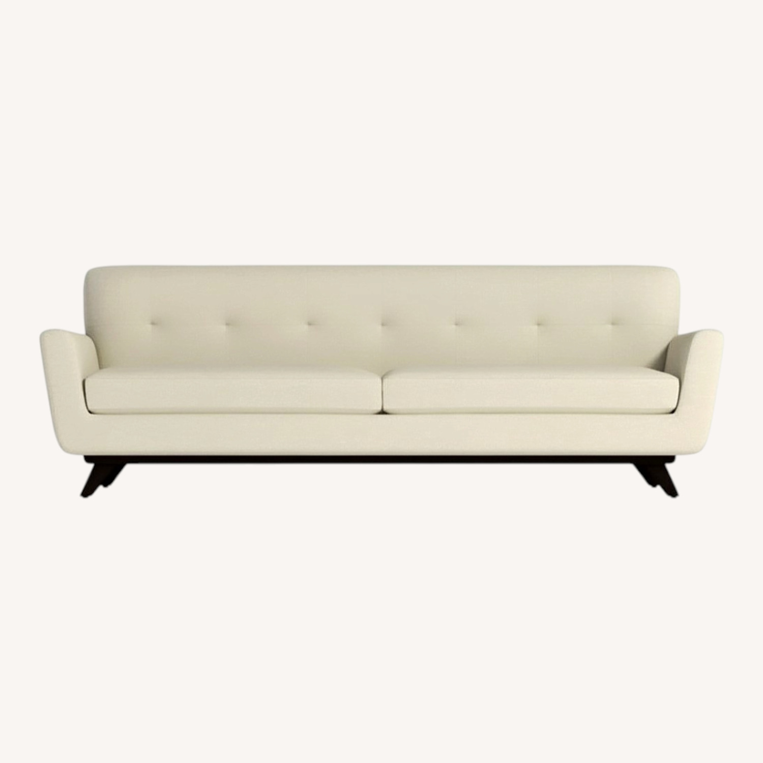Seller's Notes:The made in the USA, hand-made, midcentury Carson feels soft and cushiony, and looks retro yet futuristic (the tufted back versus the flared-out silhouette and legs). It's the spruce-up any living space can ply for a contemporary makeover, especially for apartment dwellers who can use a slightly larger-than-average loveseat sofa to swell out their square footage. The loveseat is Off White with Ebony legs. This loveseat was in a guest room and never used.