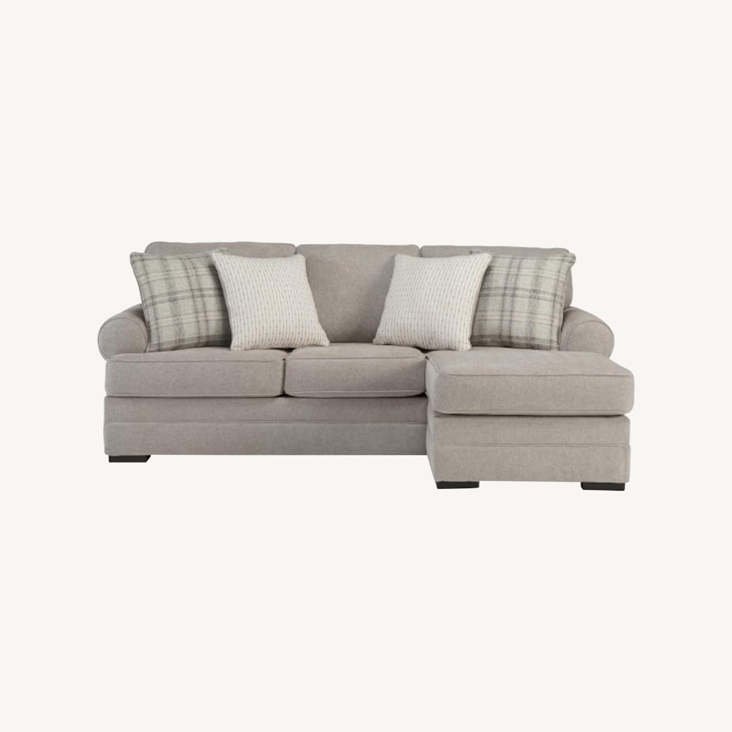 Seller's Notes:The Arbhor Knoll sofa chaise is perfect for movie nights, games or cozy naps. Its soft herringbone weave upholstery offers unmatched comfort. Accent pillows add a casual contemporary touch with their delightful blend of colors. Elevating your relaxation game has never been easier.